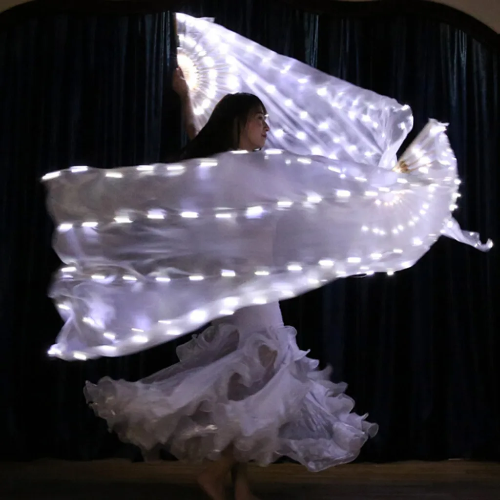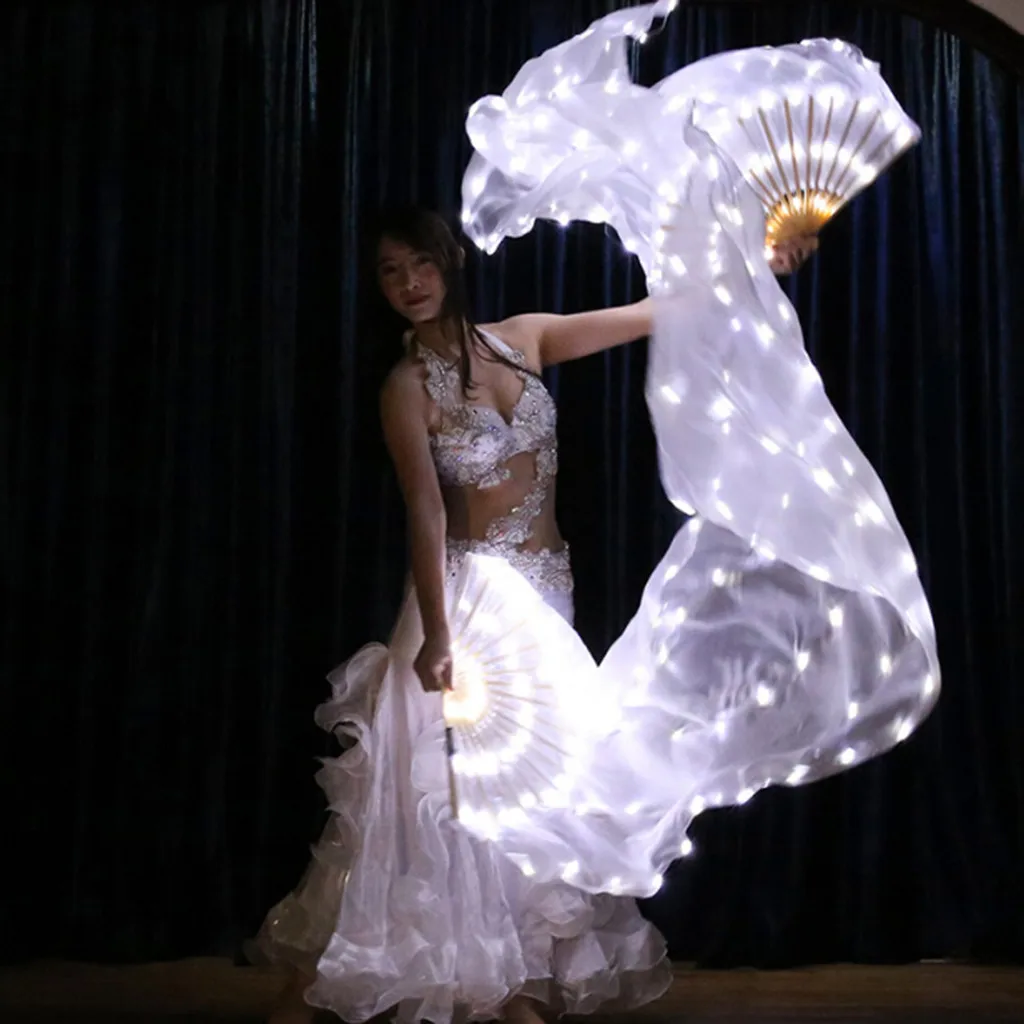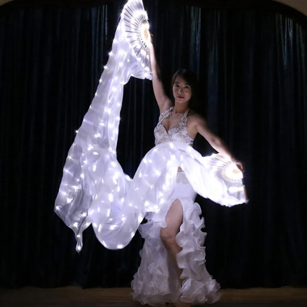 Белые вентиляторы для танца живота, светодиодные танцевальные вентиляторы, реквизит для танцев на сцене, инструменты для занятий танцами