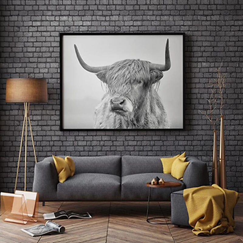 Черный и белый домашний декор животных постеры принты Highland корова Як холст живопись настенные художественные картины для гостиной