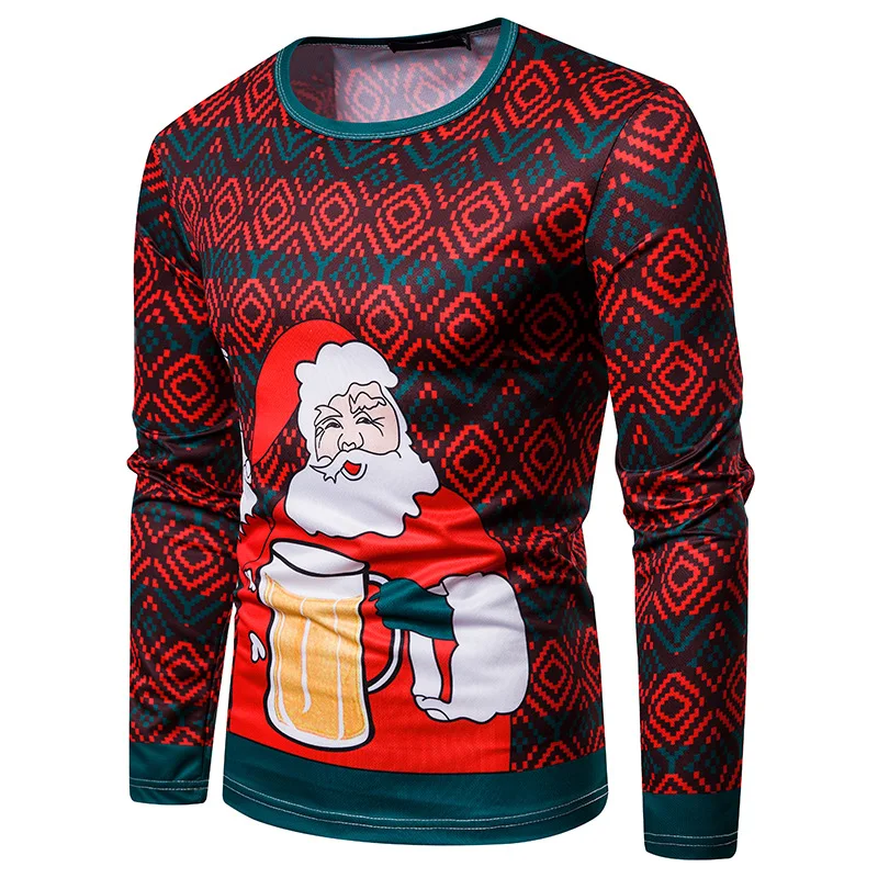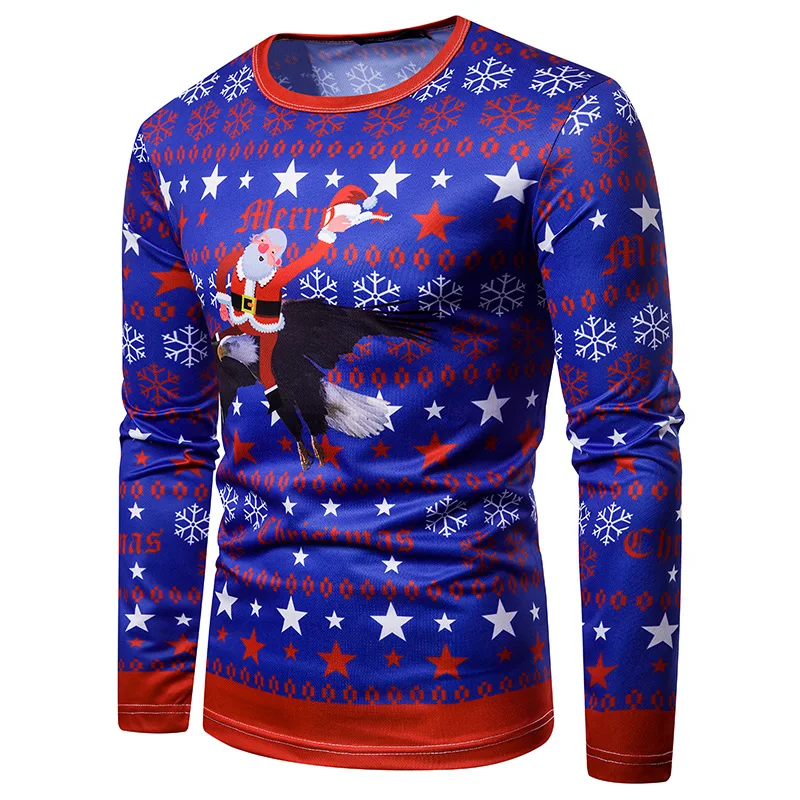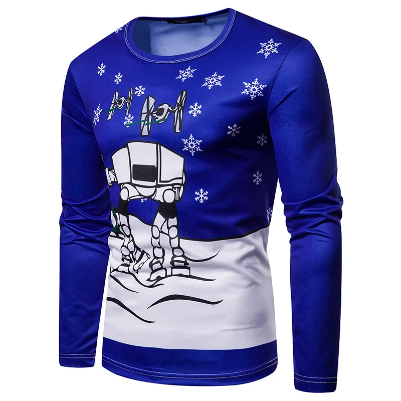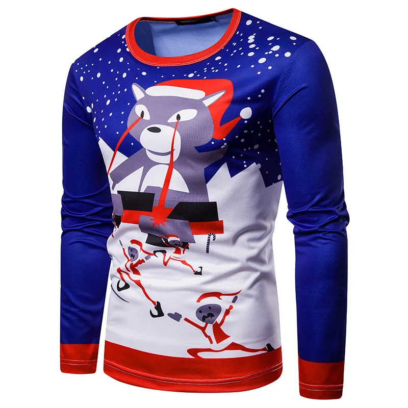 Мужская Рождественская футболка с 3D забавным принтом с длинным рукавом, Мужская футболка с круглым вырезом, футболка из полиэстера, Мужская MTL115-1