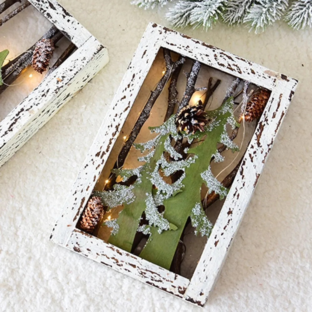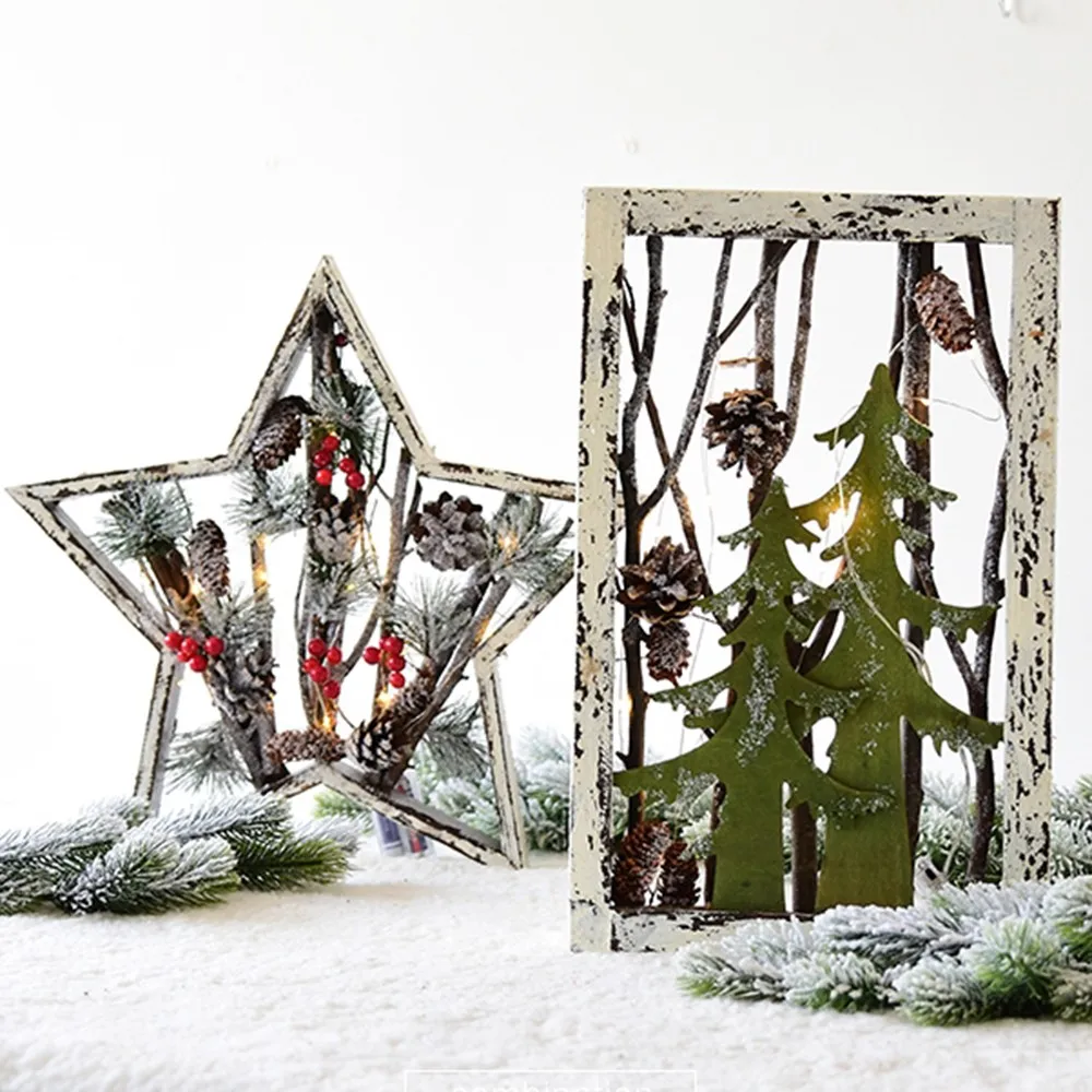 Креативный светодиодный Pentagam красные ягоды дерево освещение Рождество квадратный настенный Обои для рабочего стола рождественские украшения