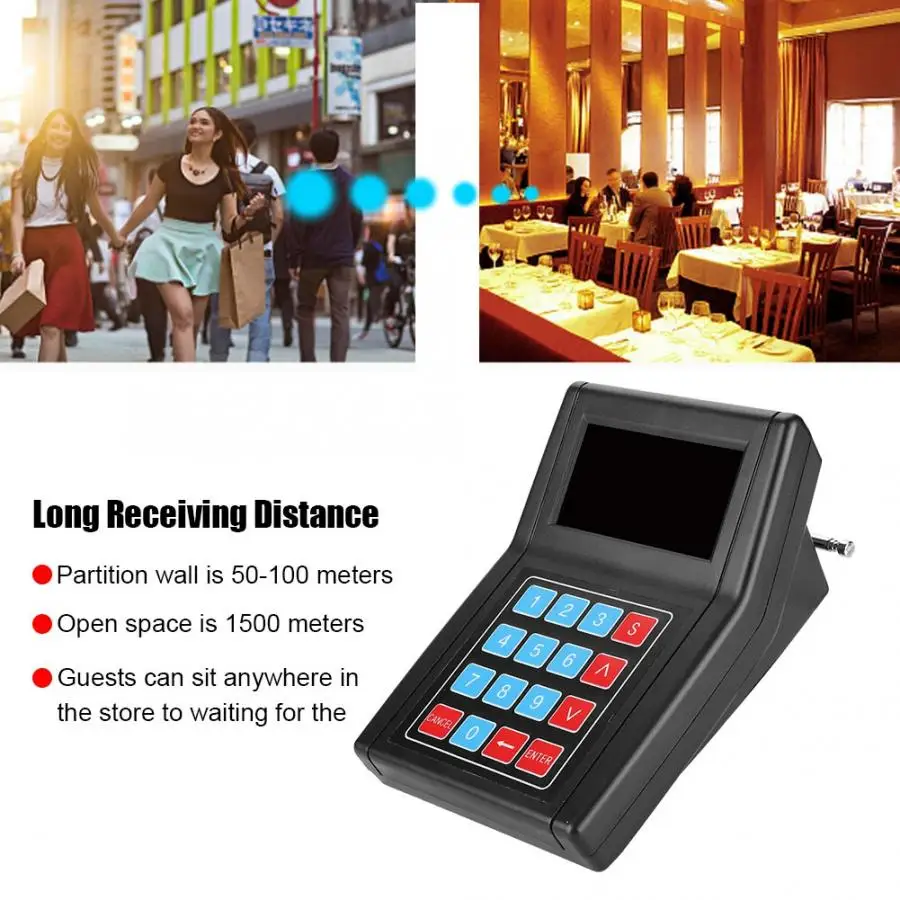 После заказа гости могут сидеть и отдыхать, и не нужно ждать в очереди в баре. Это очень удобно для гостей. Расстояние приема перегородки составляет 50-100 метров, а расстояние приема открытого пространства-1500 метров (расстояние не может достичь дополнительного ускорителя сигнала). Излучатели питания могут передавать сигналы на дальние расстояния, гости могут сидеть в любом месте в магазине, а также ходить вокруг. Этот продукт изготовлен из инженерного пластикового материала-ABS, военного качества и изысканного изготовления, длительный срок службы может сэкономить затраты на магазин. Импортный набор микросхем, высокопроизводительное кодирование и декодирование шумов, быстрое рассеивание тепла и высокая стабильность. Внешний вид этого устройства является стильным, давая гостям приятные впечатления от еды. Спецификация:1 * Руководство пользователя