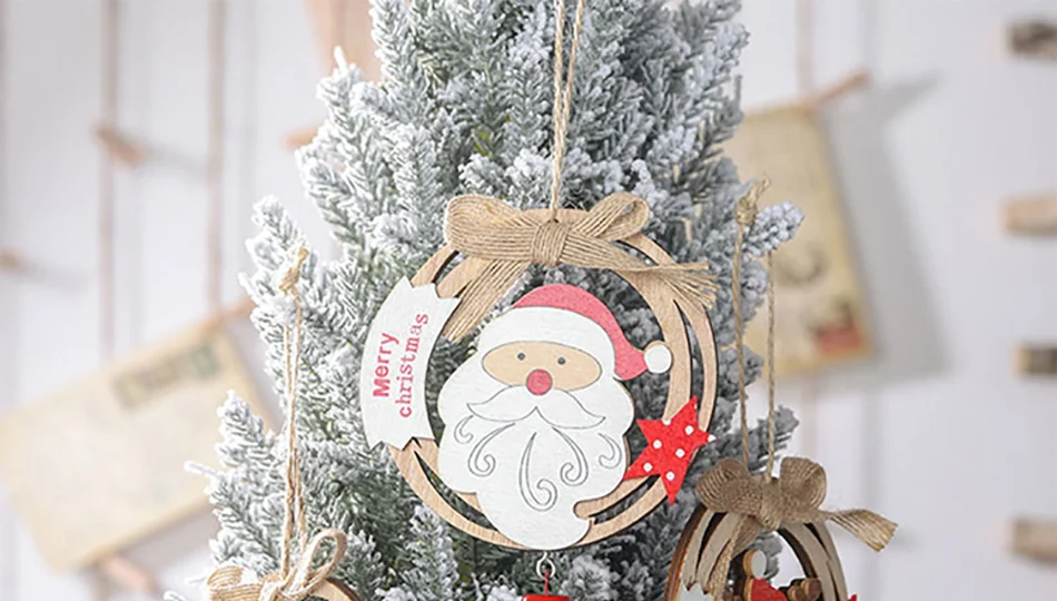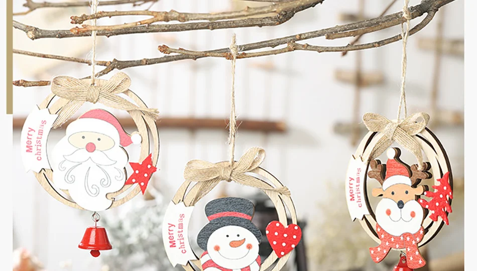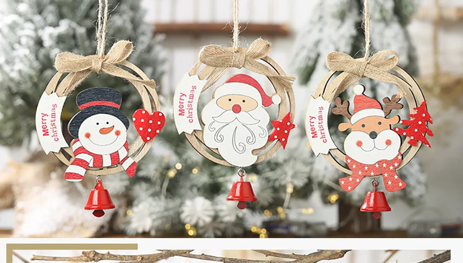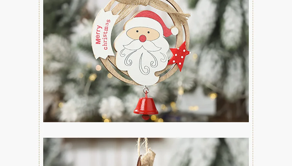 Деревянный венок Санта Клаус Снеговик олень кулон с колокольчиком для дома Рождество украшение дерево висячие украшения ZB038