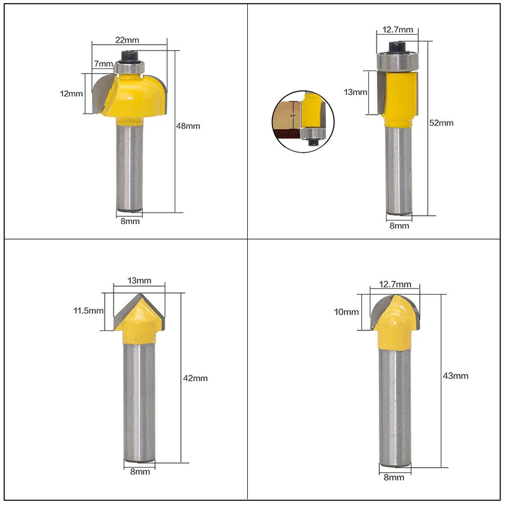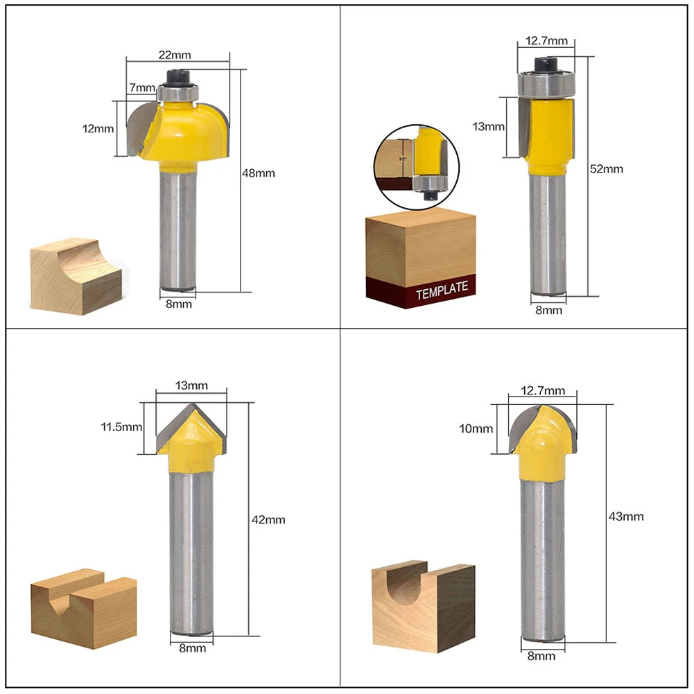 12/24 шт. фреза для создания выпуклой филенки резки по дереву, 8 мм карбидный хвостовик мельница деревообрабатывающий фрезерный Гравировка режущие инструменты