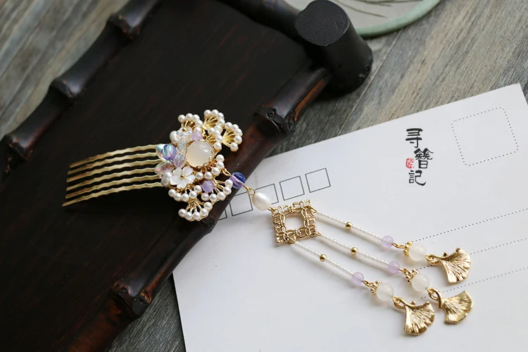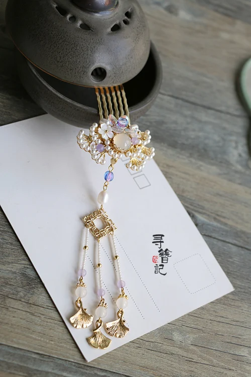 [Металлический материал] на Сосновой ветке-имитация жемчуга abs ([Детальный Размер]: гребень для волос, общая длина 45*75 мм, зубцы 20*45 мм, длина кисточки около 12 см