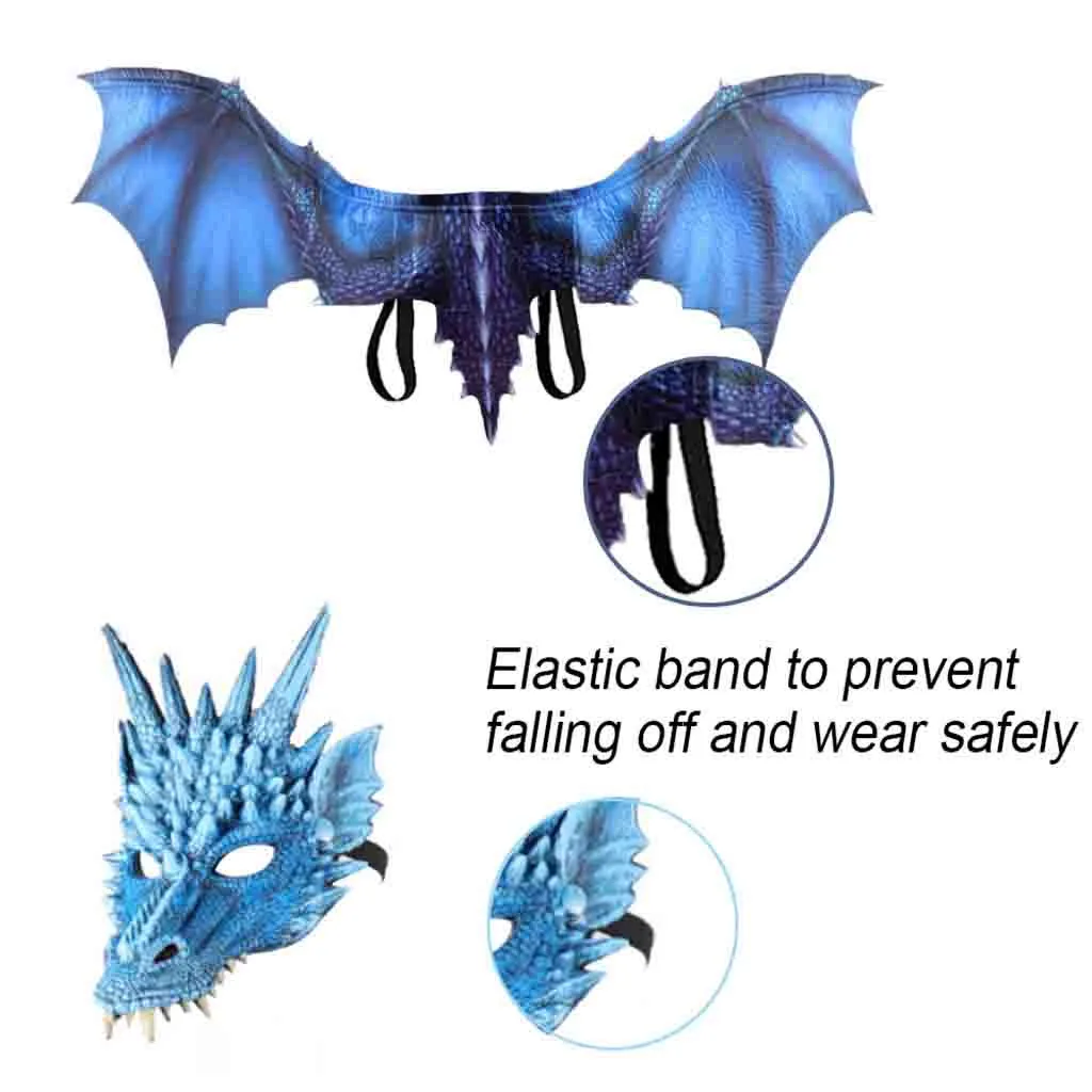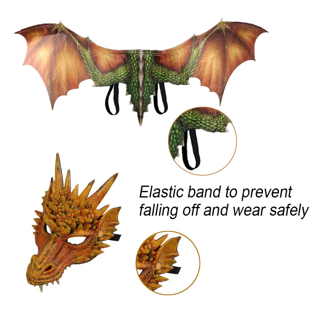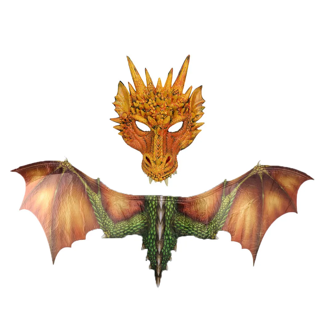 Фэнтези Хэллоуин Dinosaurio костюм дракона Косплей Маска животного аксессуар крылья