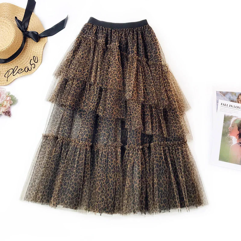 Motina Julia 2018 модная леопардовая юбка с принтомПропускающая воздухЮбка миди с оборками в горошекУличный стильОдеждаЖенская обувь из сетчатого материалаЮбка