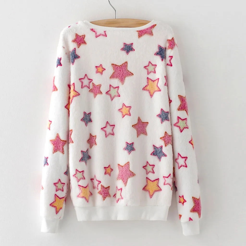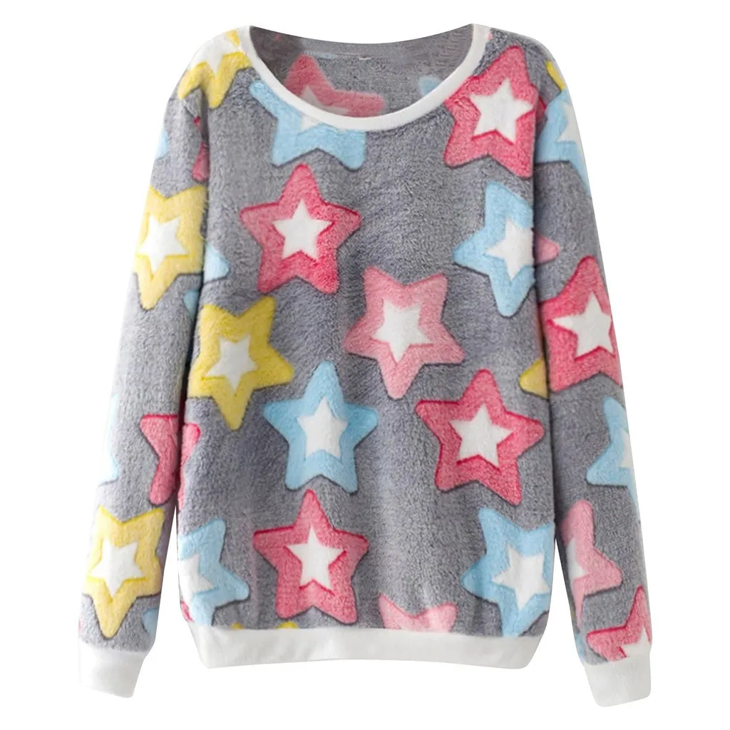 Модная женская Повседневная Свободная плюшевая толстовка с длинными рукавами и принтом