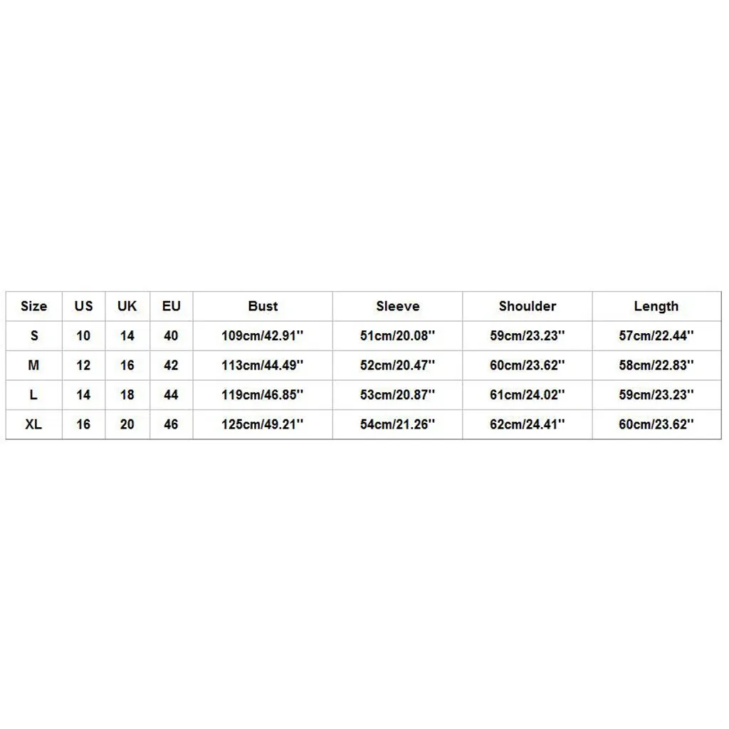 Размер Свяжитесь с нами Великобритания ЕС Обхват груди Рукава Сумка на плечо Длина S 10 14 40 109 см/42,91'' 51 см/20,08'' 59 см/23,23'' 57 см/22,44'' М 12 16 42 113 см/44,49'' 52 см/20,47'' 60 см/23,62'' 58 см/22,83'' L 14 18 44 119 см/46,85'' 53 см/20,87'' 61 см/24,02'' 59 см/23,23'' XL 16 20 46 125 см/49,21'' 54 см/21,26'' 62 см/24,41'' 60 см/23,62''