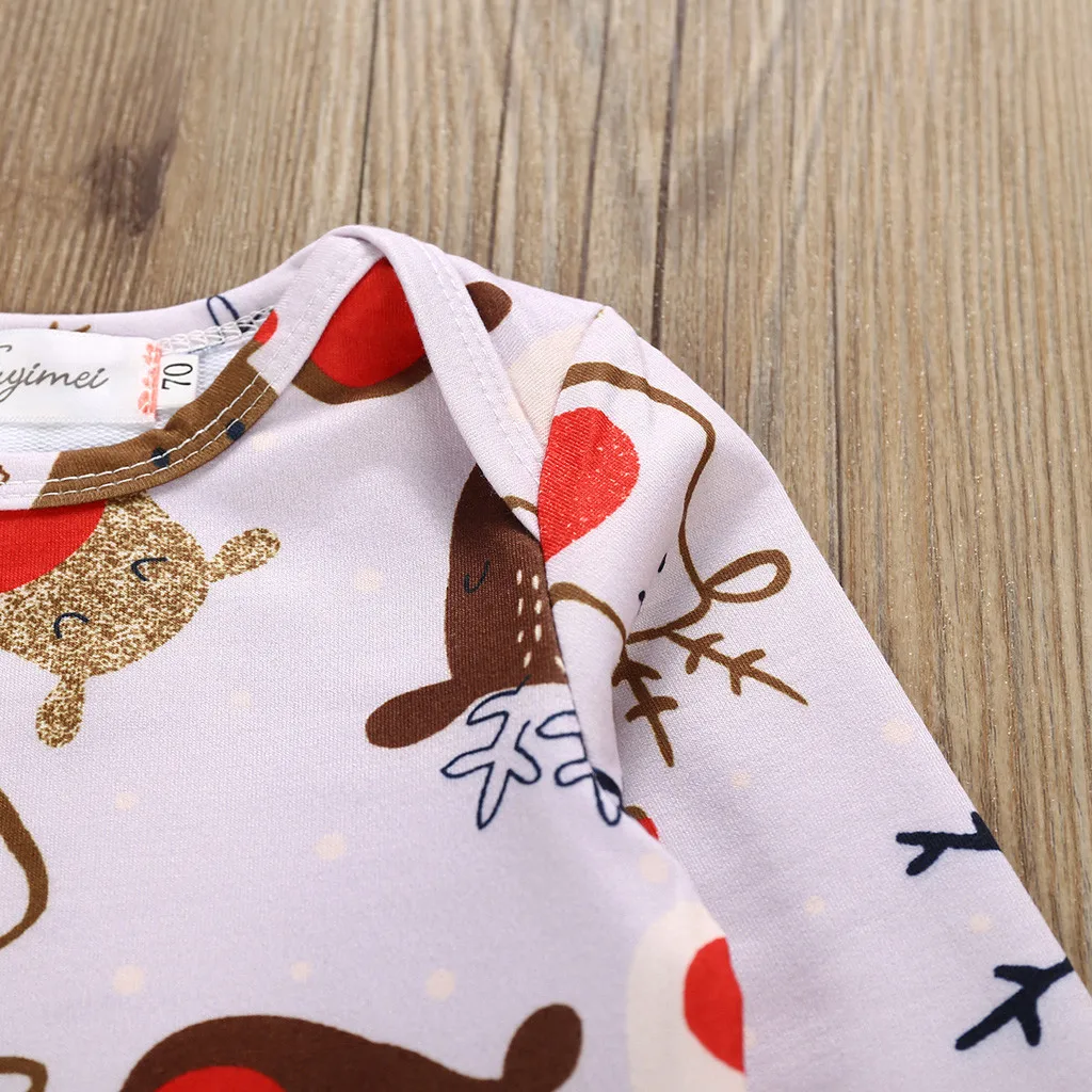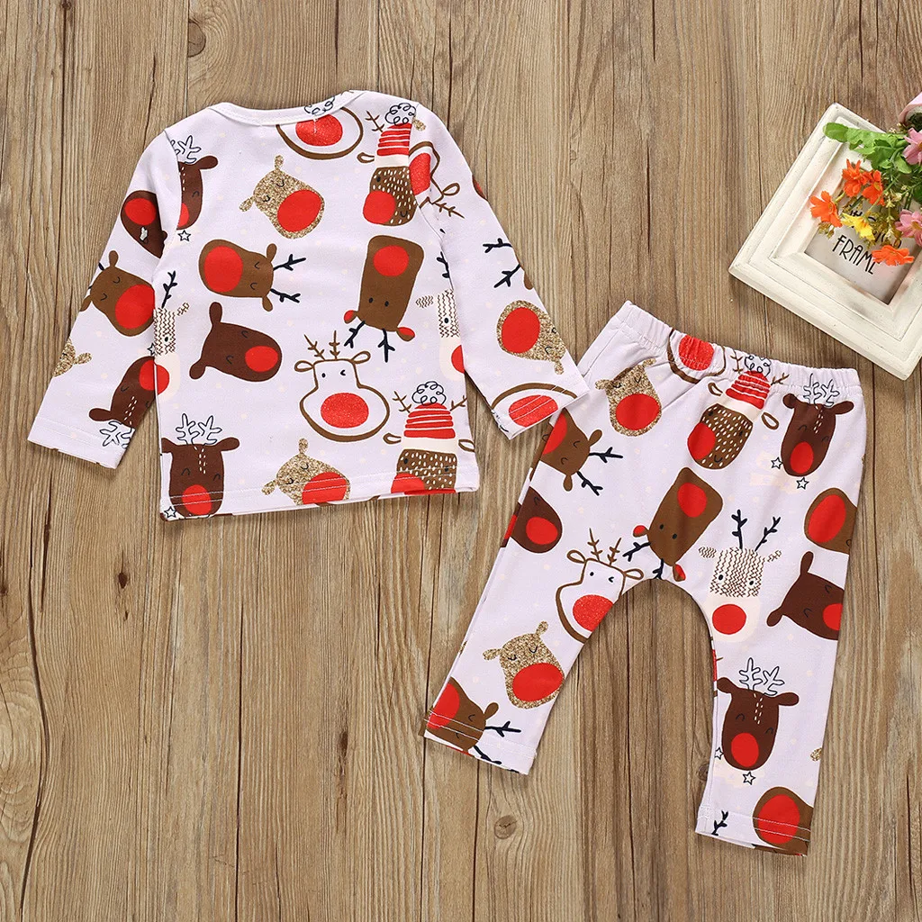 Комплект одежды для маленьких мальчиков и девочек 0-24 месяцев, Рождественская Одежда для новорожденных девочек, футболка с рисунком оленя, штаны, Пижамный костюм, одежда для маленьких мальчиков