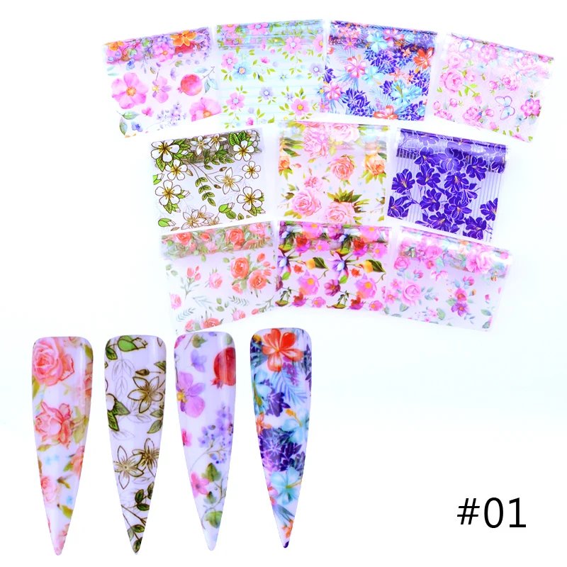 Упаковка: 10 шт. фольги для переноса нейл-арта (10 видов конструкций, как показано на рисунке)