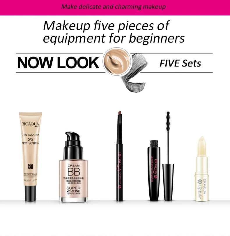 BIOAQUA питательные увлажняющие яркие набор косметики губы бальзам, ВВ-крем карандаш для бровей, тушь для ресниц и бровей Крем-основа для макияжа 5 шт.