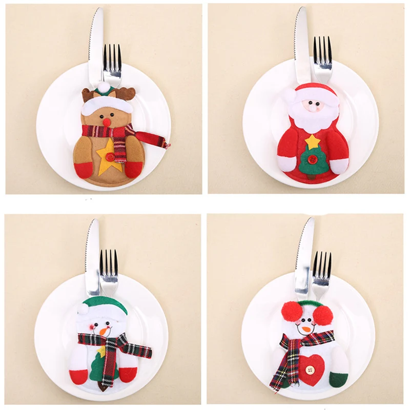 4 шт. рождественские вечерние принадлежности сатана Клаус/Снеговик карманная вилка, нож, столовые приборы держатель сумка Посуда украшения детский подарок Рождественский Декор