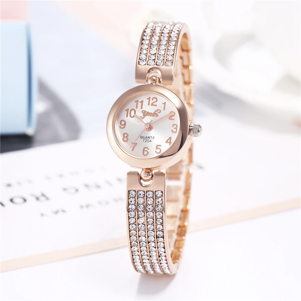 2019 Лидирующий бренд для женщин браслет часы Роскошные Стразы розовое золото платье часы женские модные повседневное сплава кварцевые наручные часы