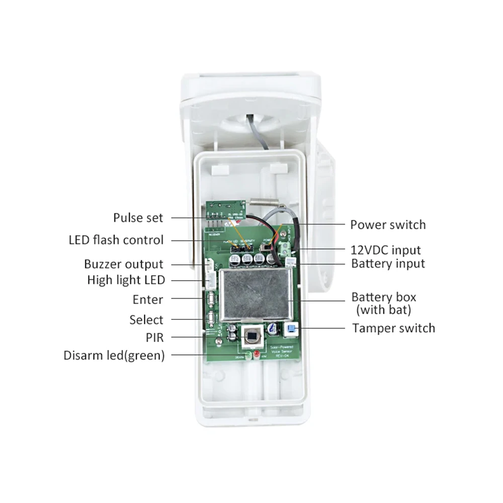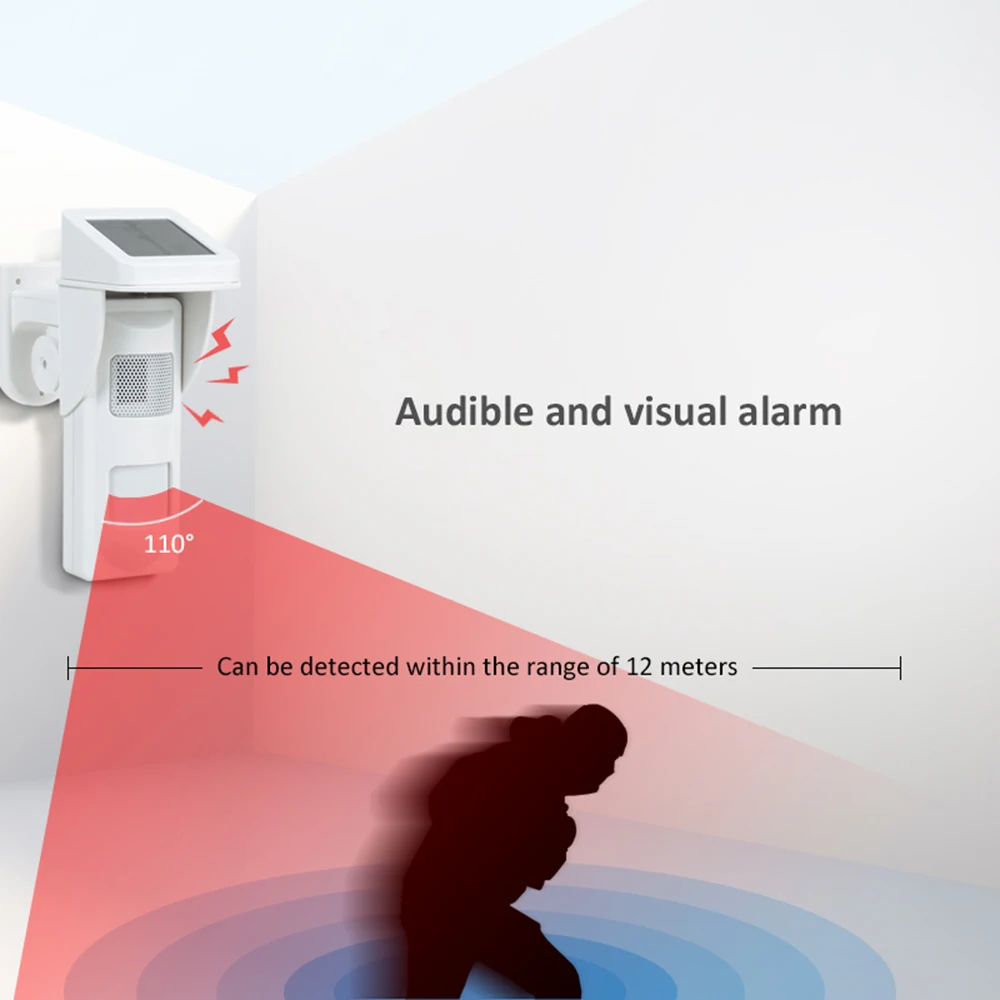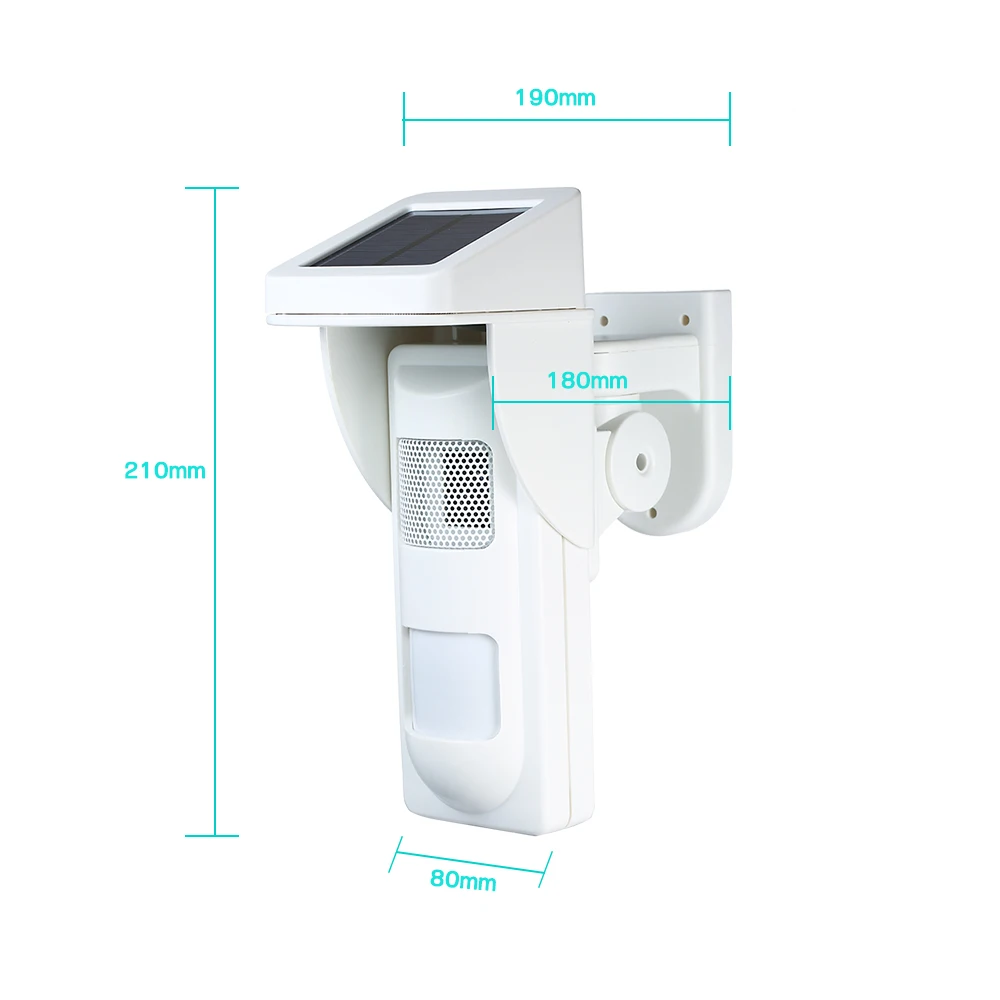 Это замечательный цифровой наружный PIR alertor на солнечной энергии со звуковым и световым индикатором, который может избежать внешнего переплетения от солнца, влажности, пыли, насекомых и ветра.
