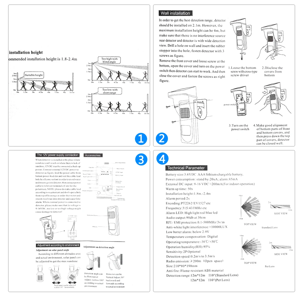 Этот детектор принимает очень передовую технологию, как показано ниже: технология прямого анализа для интрузии PIR сигнала от цифрового высокоскоростного микропроцессора;