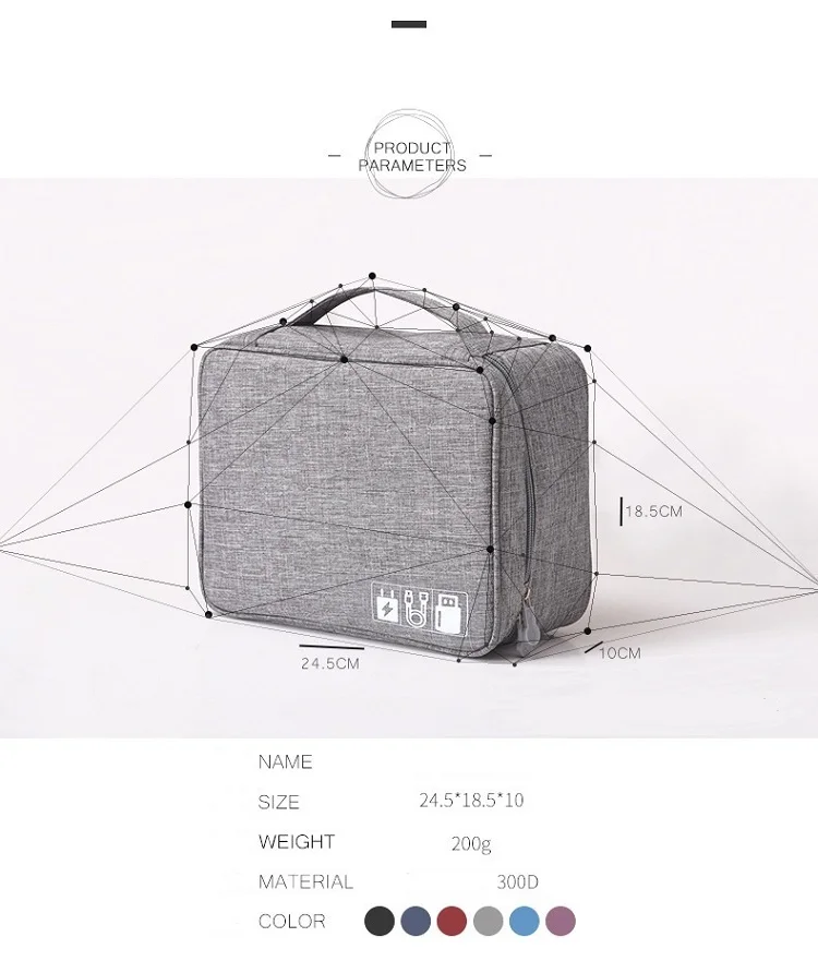 Особенности: 100% Новая высококачественная продукция. Компактный дизайн и легко носить с собой. Изготовлен из водонепроницаемого Оксфорда, он водонепроницаемый и прочный. Идеально подходит для переноски цифровых аксессуаров, косметики и других гаджетов. Сделайте ваш мобильный телефон, usb-кабель, мобильное питание, наушники и другие аксессуары более гладкими и не запутанными. Прекрасное мастерство, это будет хорошим помощником для вашей жизни, путешествий и улицы. Для более комфортной жизни. Параметры: Номер товара: сумка для хранения цифровых аксессуаров Материал: полиэстер Размер: 24.5X18X10cm Характеристики: водонепроницаемый, износостойкий, прочный Упаковка: полиуретановая пена с открытыми ячейками Применимо к: цифровым аксессуарам, таким как макияж, мобильный телефон, usb-кабель, Мобильная мощность, жесткий диск, наушники и т. д. Посылка включает в себя: 1 цифровой сумка для хранения