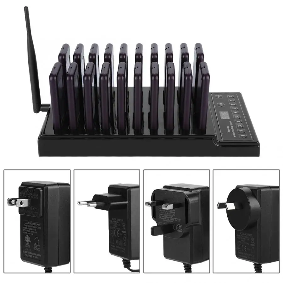 Эта беспроводная система вызова очереди использует клавиатуру 999 каналов и 20 частей пейджеров для повышения эффективности работы в значительной степени и избежания ожидания клиента в длинной очереди. Встроенная антенна распределяет рабочее расстояние до 1 км. Кроме того, 3 режима индикации вибрации, bee cue и вибрации + bee cue делают его подходящим для различных ситуаций.