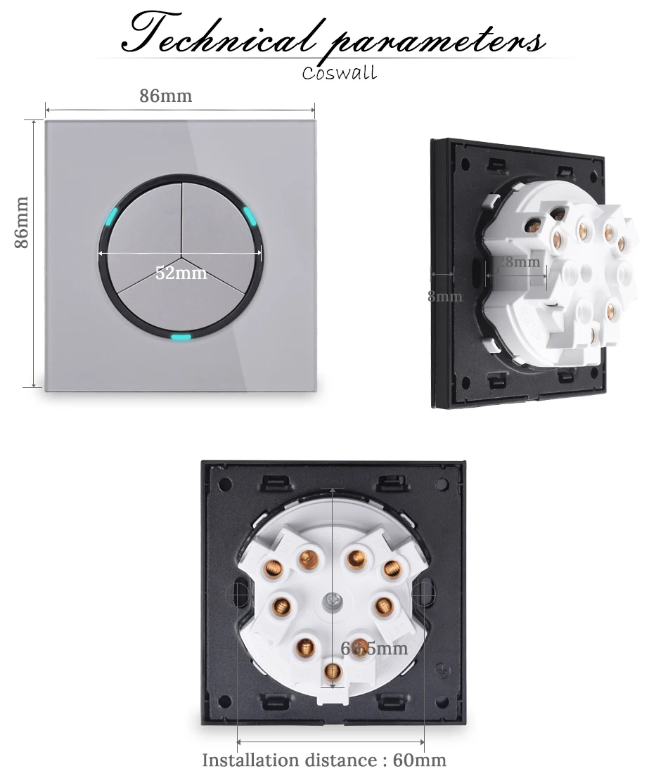 Coswall 3 Gang 2 Way случайный щелчок вкл/выкл настенный светильник светодиодный индикатор проходной переключатель переключаемая стеклянная панель белый черный серый