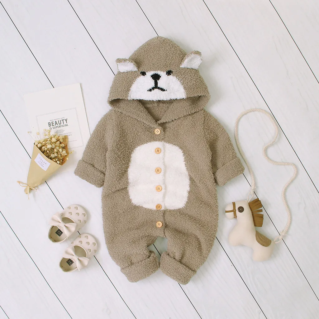 Зимний теплый флисовый комбинезон с капюшоном для новорожденных мальчиков и девочек, верхняя одежда