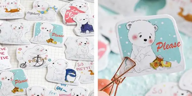 45 шт. милый молочный белый медведь дневник наклейки пакет Kawaii планировщик журнал Скрапбукинг наклейки канцелярские Escolar школьные принадлежности
