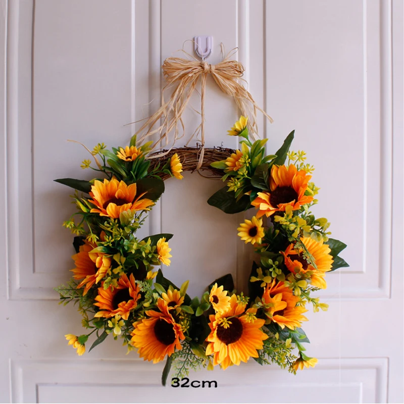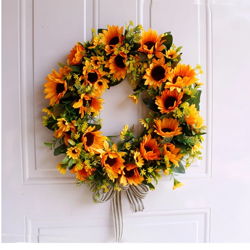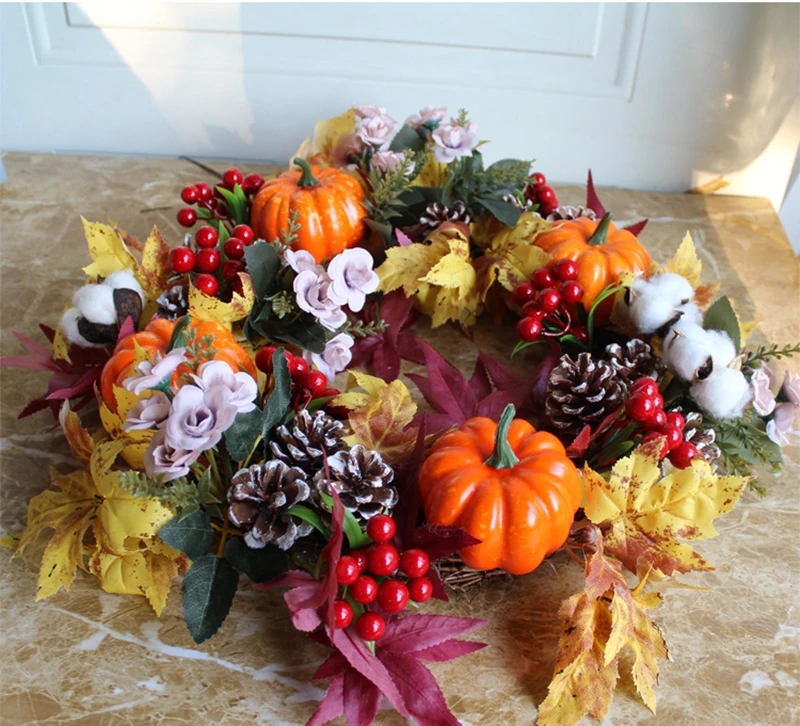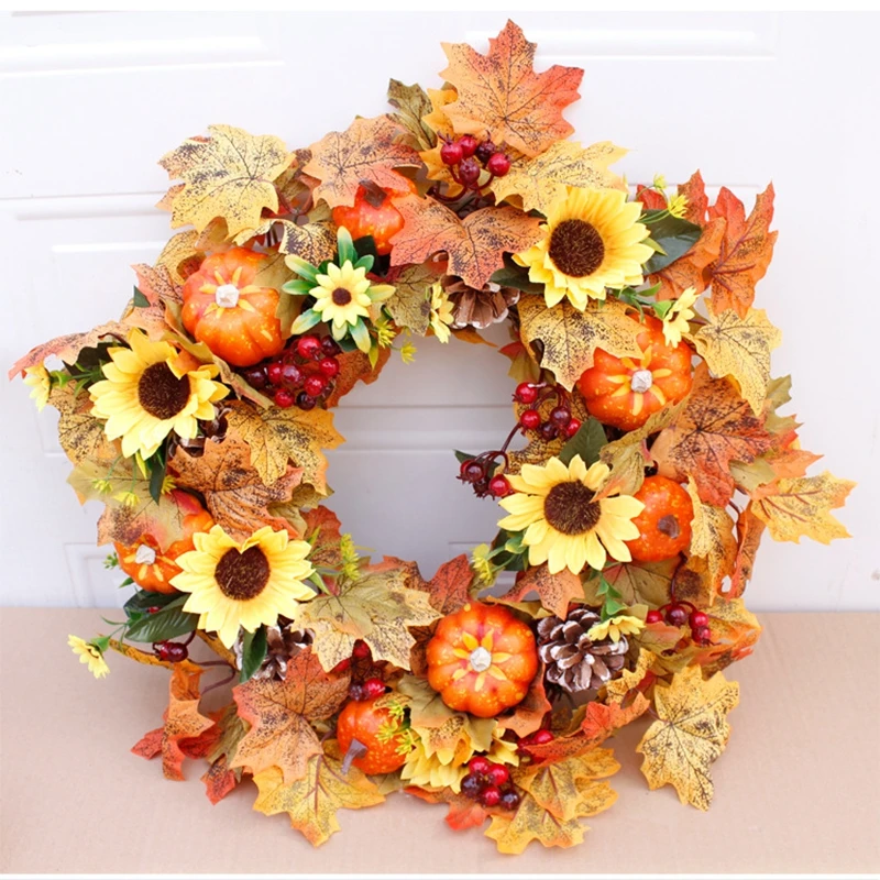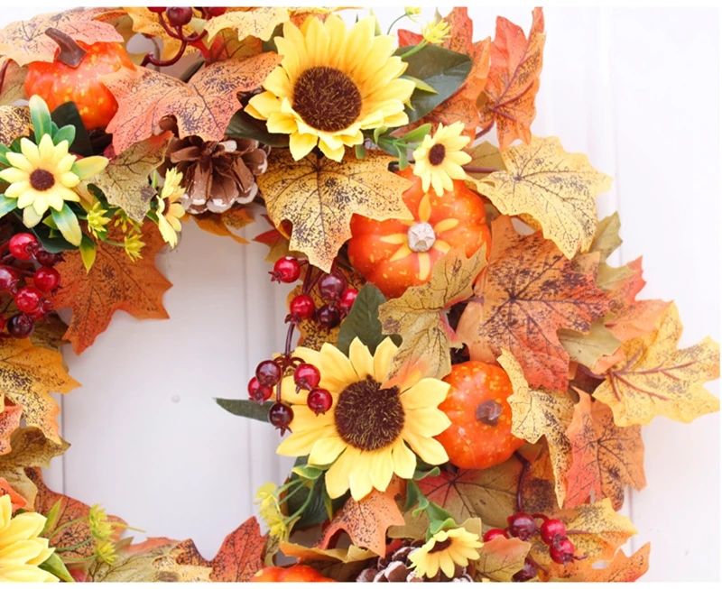 Подсолнух ягоды кленовые листья венок из искусственных цветов Гирлянда День благодарения дверь украшение стены Рождество украшение дома