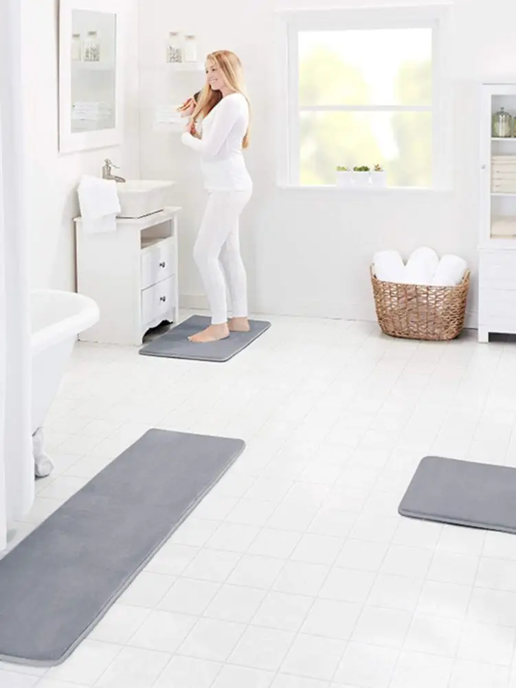 1. Высокое качество: мягкая и удобная пенополиуретановая пена с эффектом памяти, очень мягкая и удобная Коралловая флисовая ткань на ощупь из сверхтонкого волокна. Толще и лучше, чем большинство других брендов. Идеально подходит для ванных комнат, туалетных столиков, домов для отдыха, ванных комнат, детских ванных комнат, гостевых комплектов. Хороший подарок на все случаи жизни, Рождество, свадьбу, День отца, День матери, День святого Валентина.