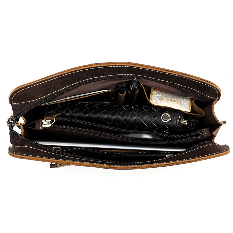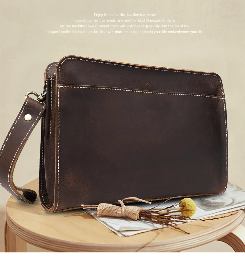 Материал: 100% натуральная кожа Особенность: кожа Crazy horse Дизайн: кожаная сумка для мужчин и женщин Емкость: может держать книги, iPad, карманные книги, мобильный телефон, кошелек, очки, бумажные салфетки и т. Д.