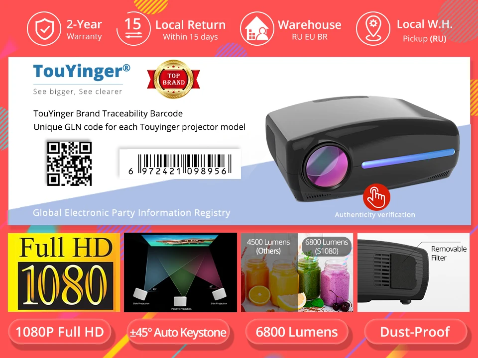 * 6800 люмен высокой яркости; * Родное разрешение 1920*1080 точек/дюйм (RGB): * Встроенный Android 9,0, 2 Гб оперативной памяти + 32 Гб rom (только для S1080W): * Поддержка коррекции трапецеидальных искажений 4D; * Поддержка 100%-75% масштабирования дисплея; * Поддержка всех аудиоформатов ; * 53 мм 10 Вт динамики с 300cc звуковой камерой; * Съемный фильтр и регулируемая подставка для лучшего опыта; * Медный теплоотвод и тепловая трубка, принимаемая в течение длительного времени надежной работы.