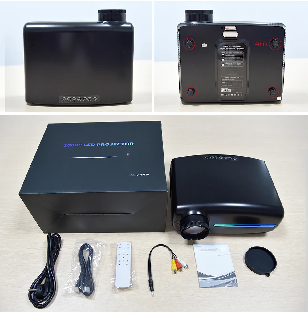 Проектор * 1 Руководство * 1 Мощность шнур * 1 Пульт дистанционного управления * 1 3 в 1 av-кабель * 1 Кабель HDMI * 1 Мы вышлем вам правильный штекер или переходник, подходящий для вашей страны.