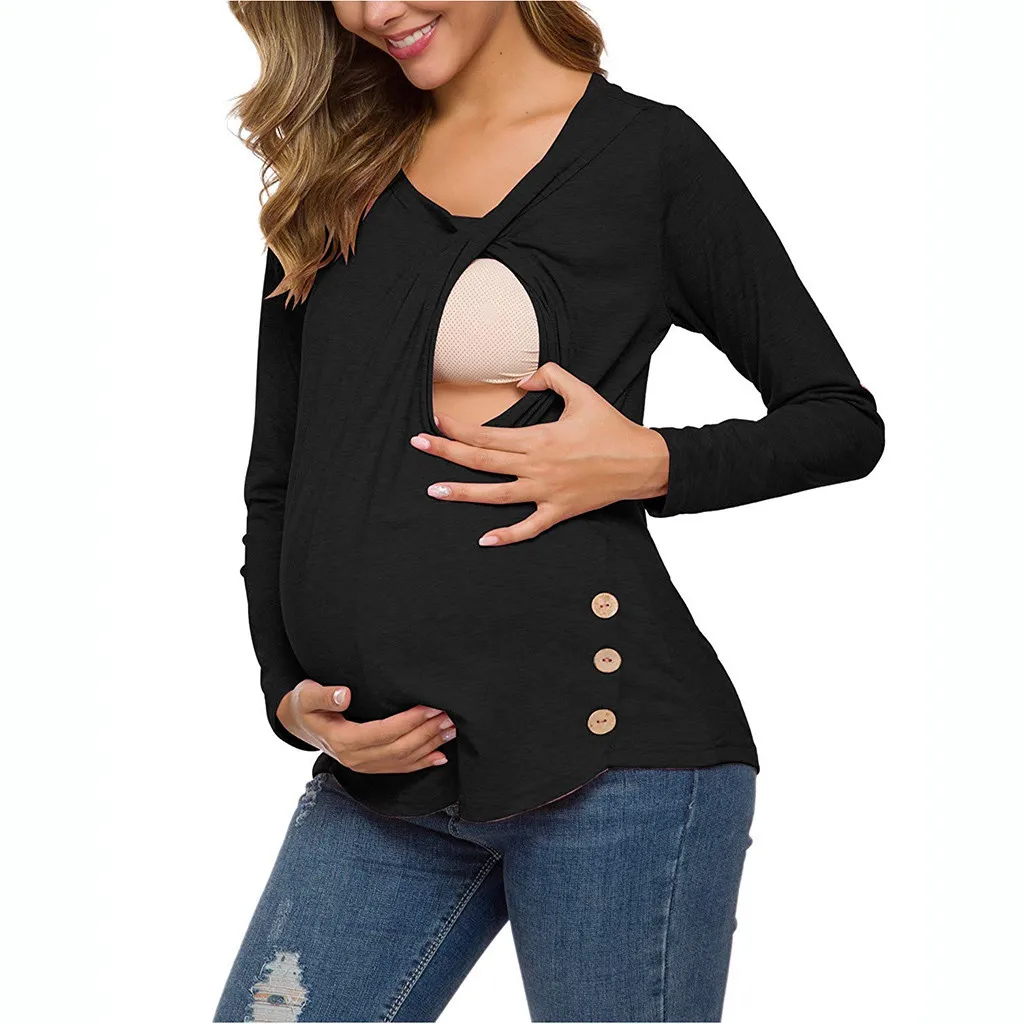 Женская туника с длинными рукавами и боковыми пуговицами для беременных