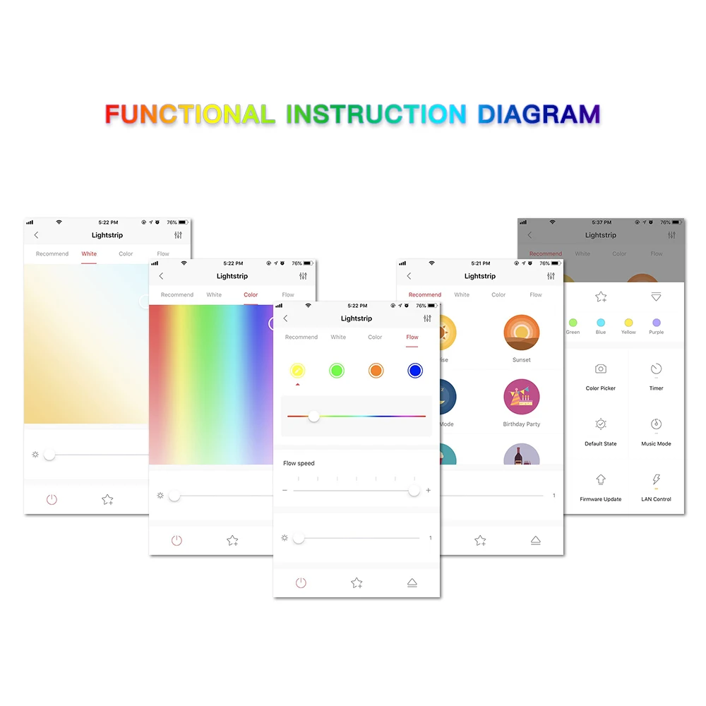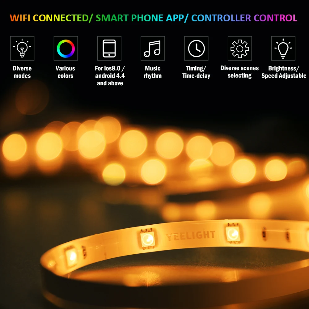 Гибкий WIFI подключен к смартфону через приложение управления или управления через предоставленный контроллер. Различные режимы освещения и великолепные световые эффекты меняются, как вам нравится.