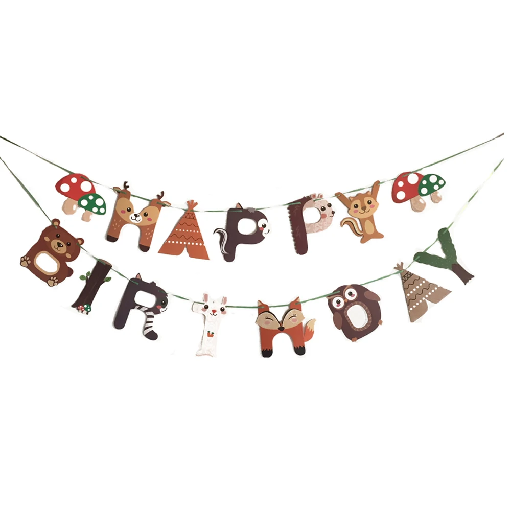 Лесное животное лесная Сова из енота, лисы гирлянда лесные создания счастливые Баннеры для дня рождения детей день рождения украшения поставки