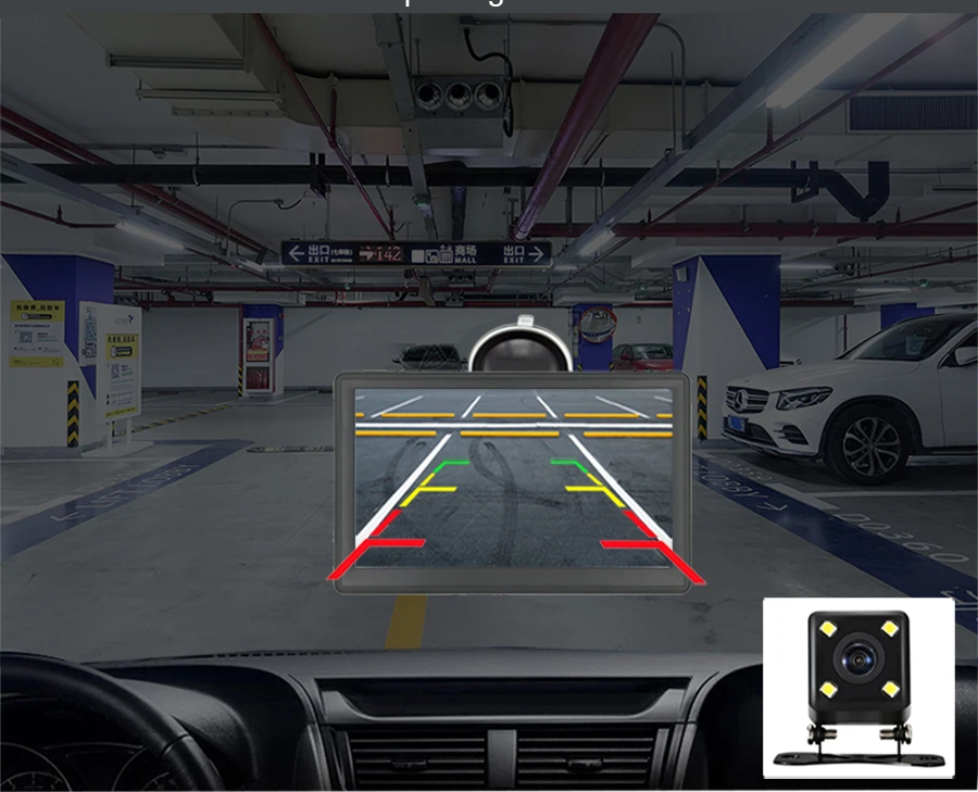 Когда автомобиль находится в обратной передаче, устройство GPS автоматически переключается на изображение задней камеры. Вы можете четко видеть все транспортные средства и предметы позади вас. Поможет вам безопасно и быстро припарковать свой автомобиль