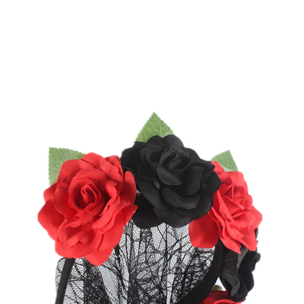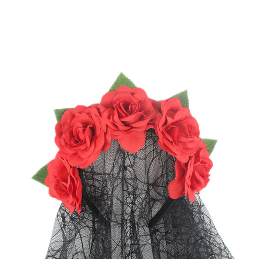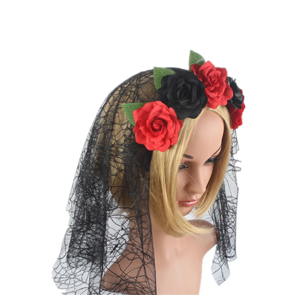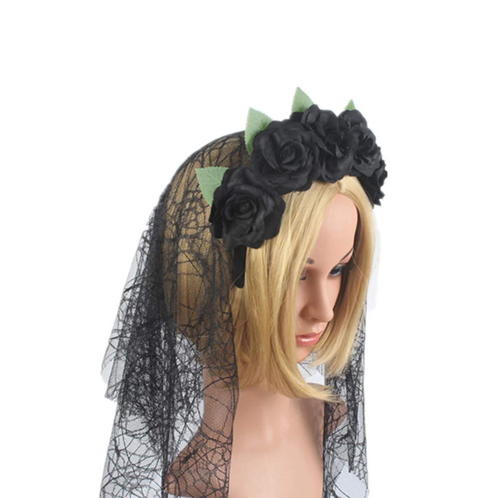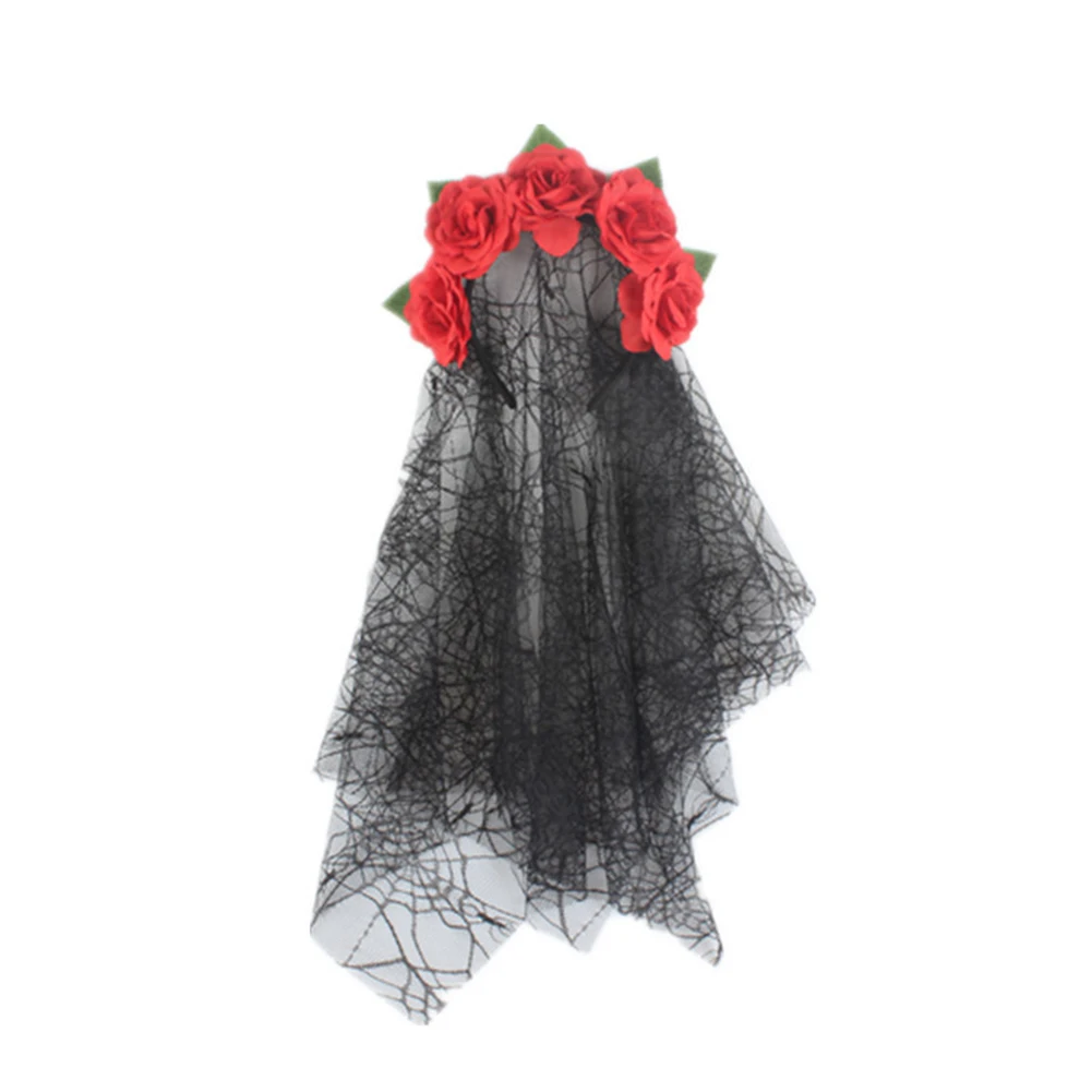 Женский ободок для волос на Хэллоуин с розами и паутином; повязка на голову для костюмированной вечеринки