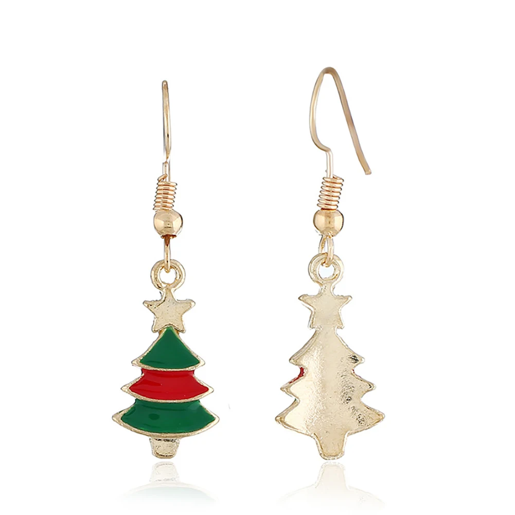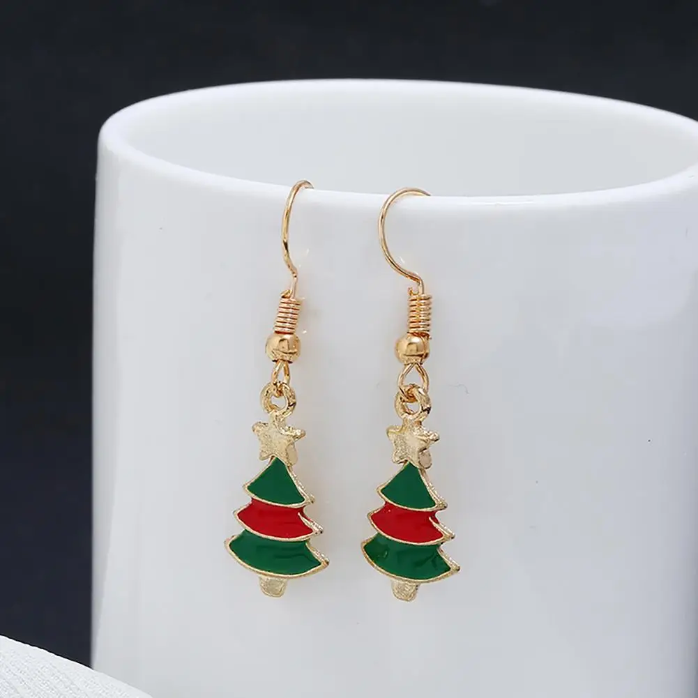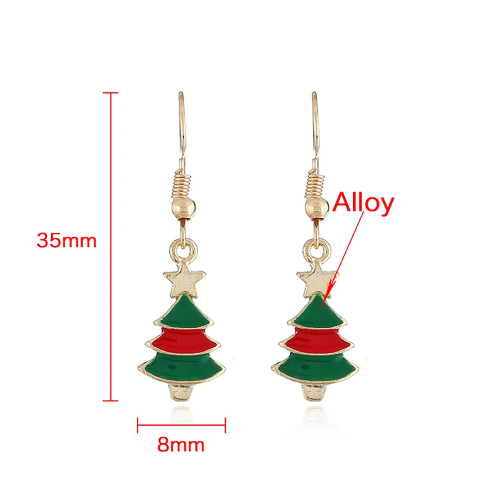 2 шт. Для женщин Эмаль Рождественская елка кулон ожерелье, серьги на крючках комплект ювелирных изделий