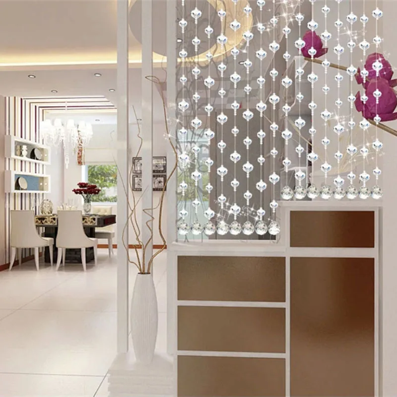 С хрустальными шариками и подвесками, он используется для украшения двери слепой гостиной.