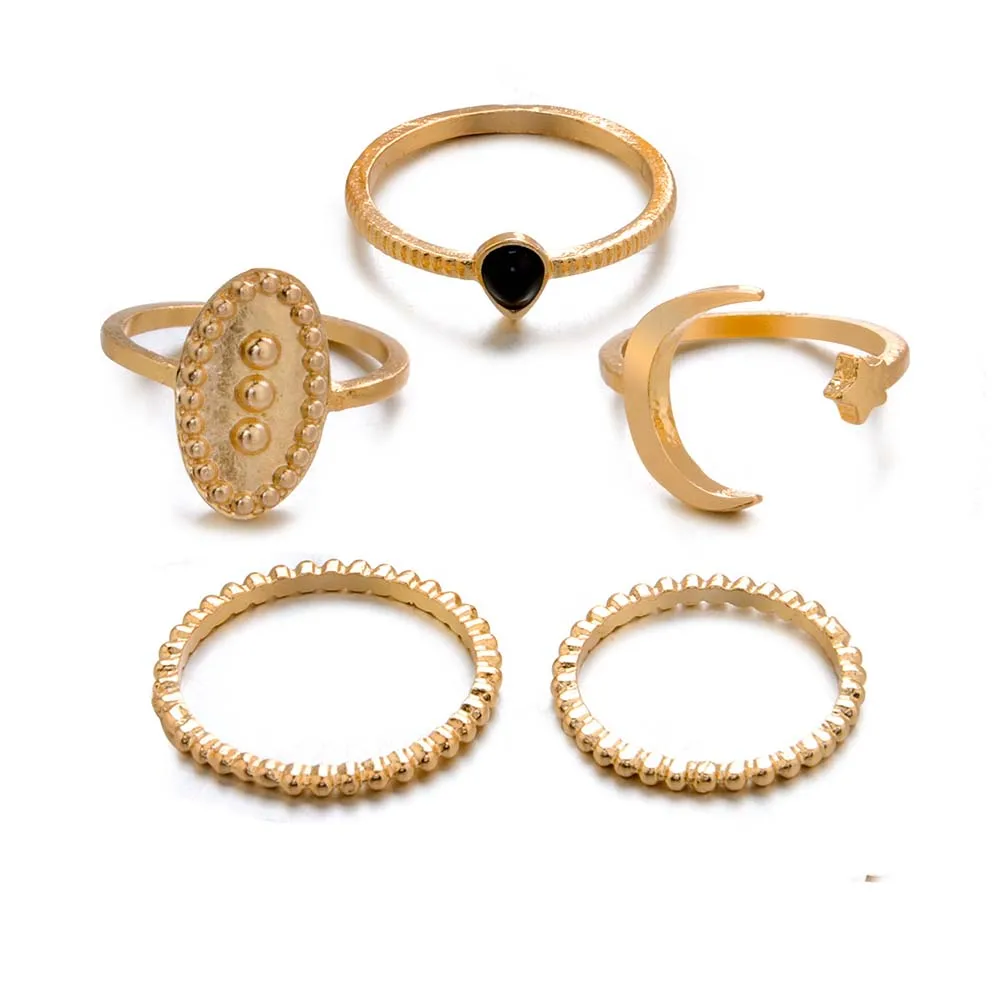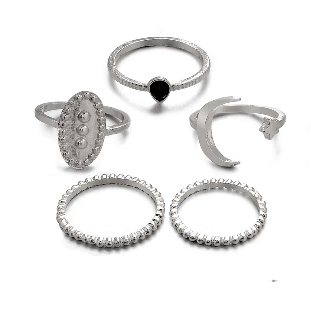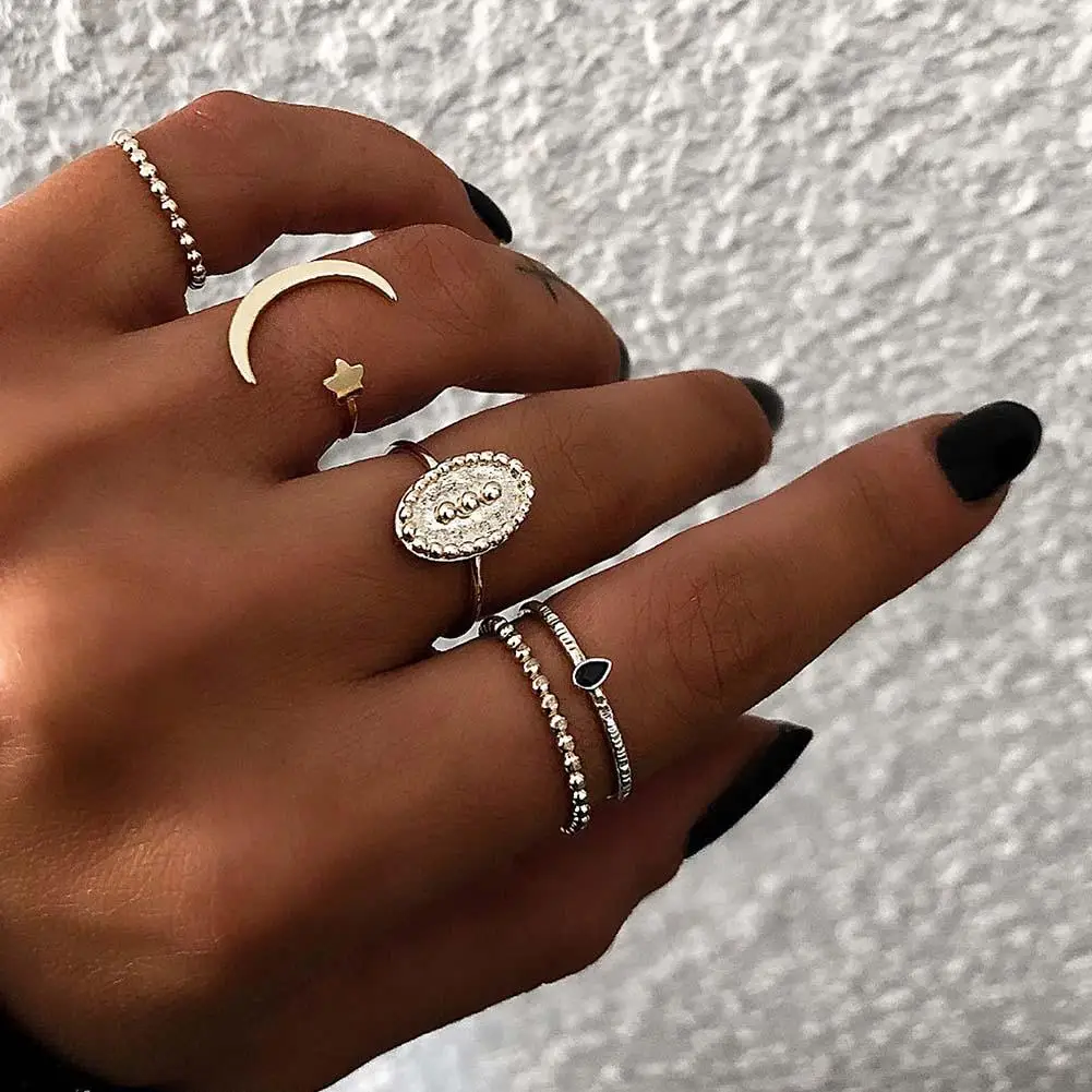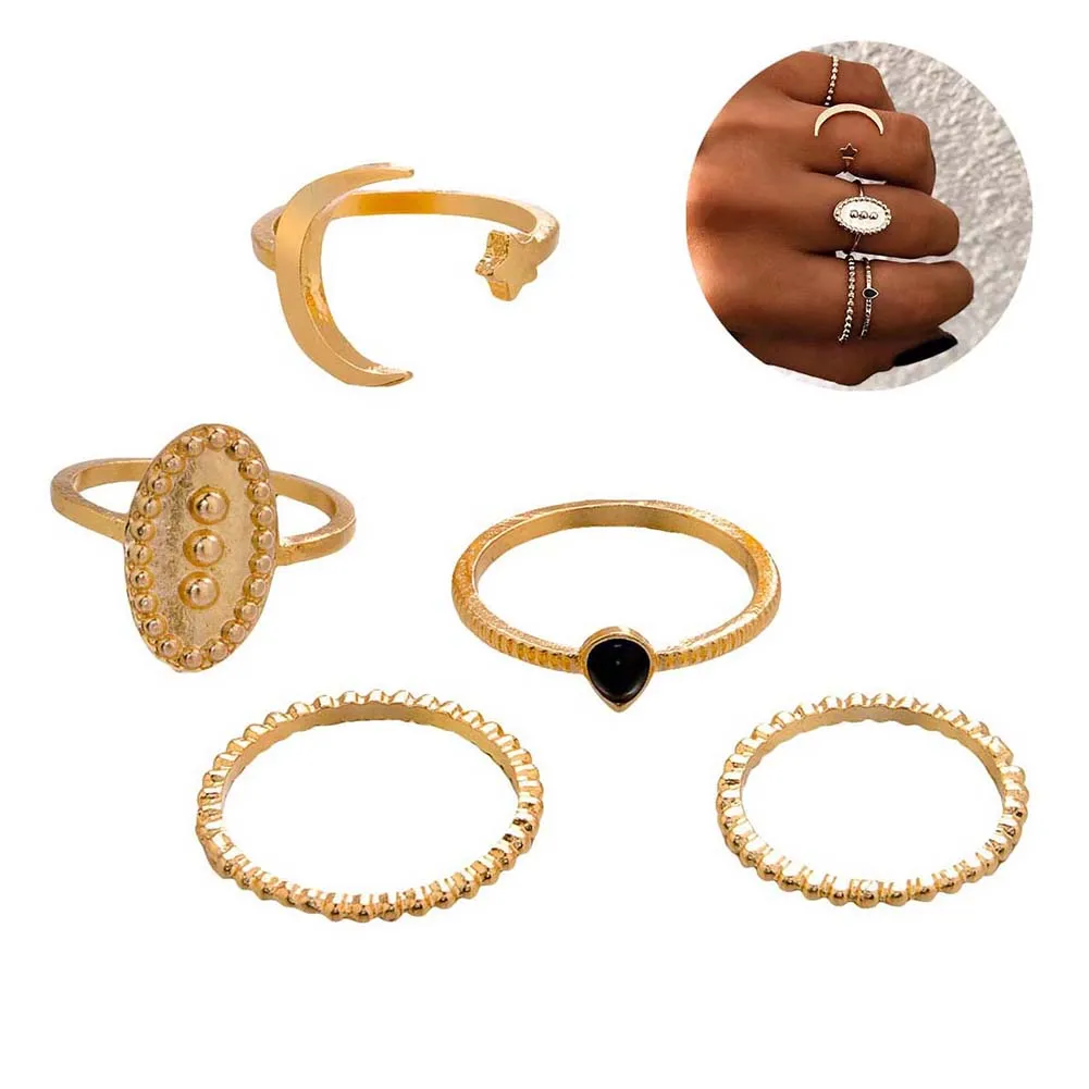 5 шт./компл. Boho женское кольцо полумесяц резные овальные укладки женский перстень ювелирные изделия подарок женские аксессуары