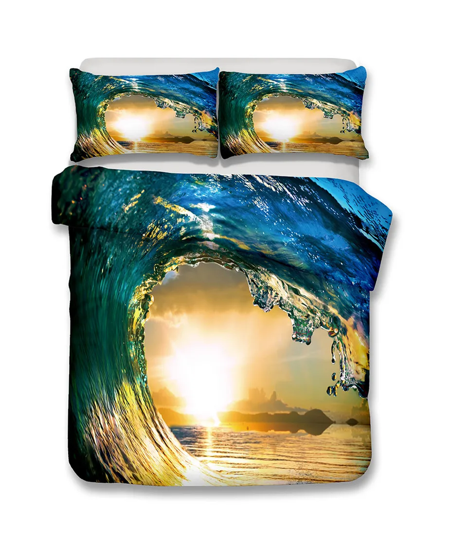 Морской волны живописный пододеяльник набор US AU GB Размер нижнее белье набор один двойной супер Король Размер кровать набор 3D печать