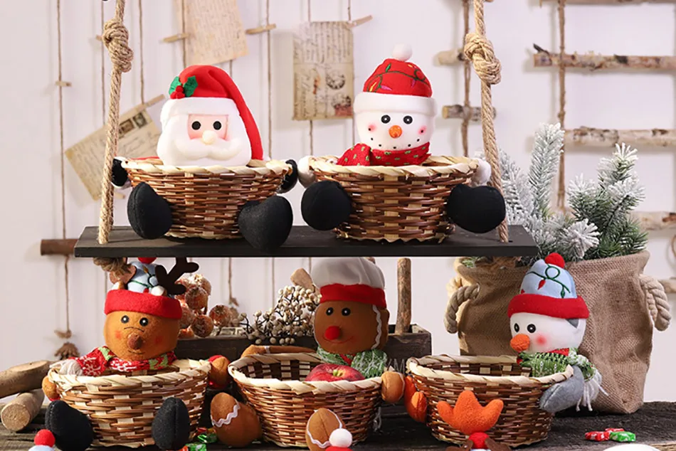 Рождественская корзина для хранения конфет и фруктов, украшение Санта-Клауса, корзина с оленем и снеговиком, подарок, Рождественское украшение, разные стили