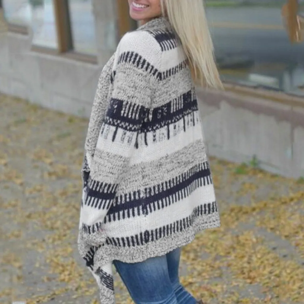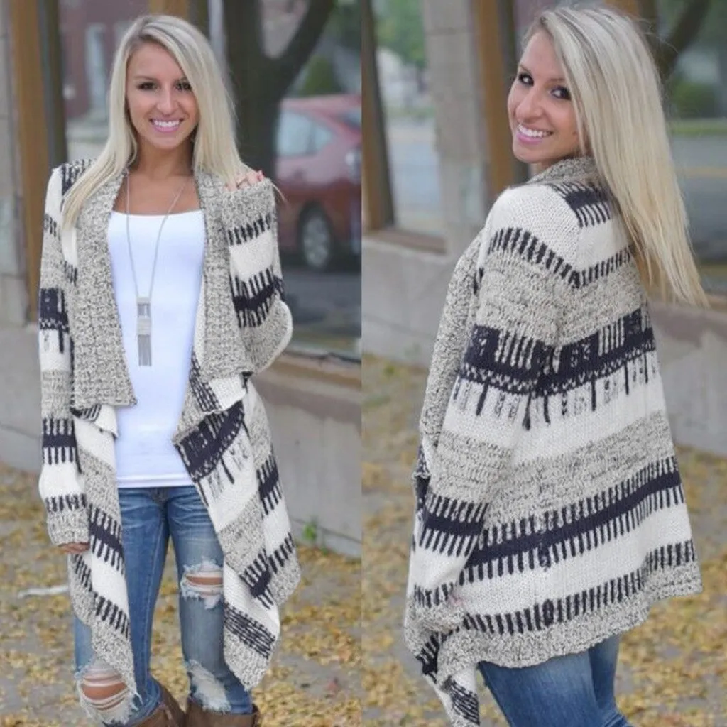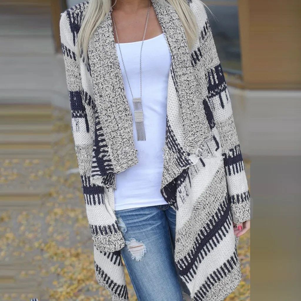 Женская мода с длинным рукавом Досуг мозаика цветок длинный кардиган пальто