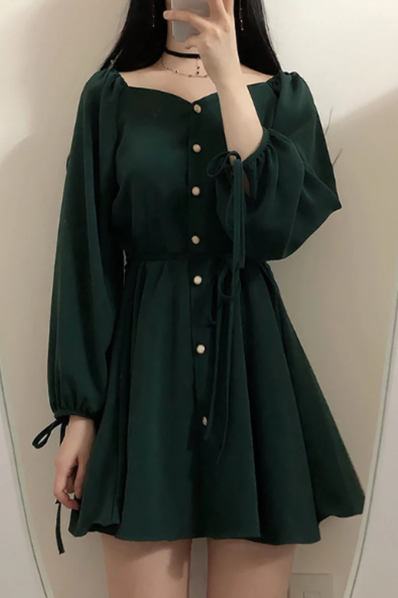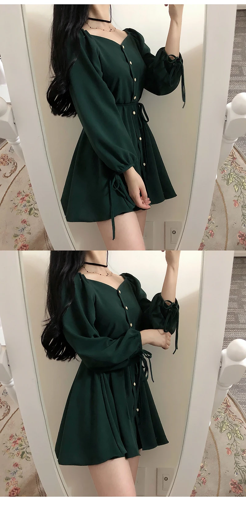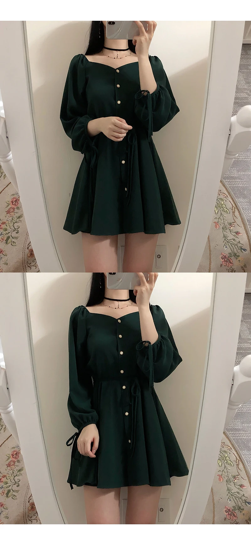 Трапециевидные шикарные платья, женская мода, корейский японский стиль, дизайн, милое платье с маленькой спинкой, вечерние винтажные платья мини на пуговицах 9310