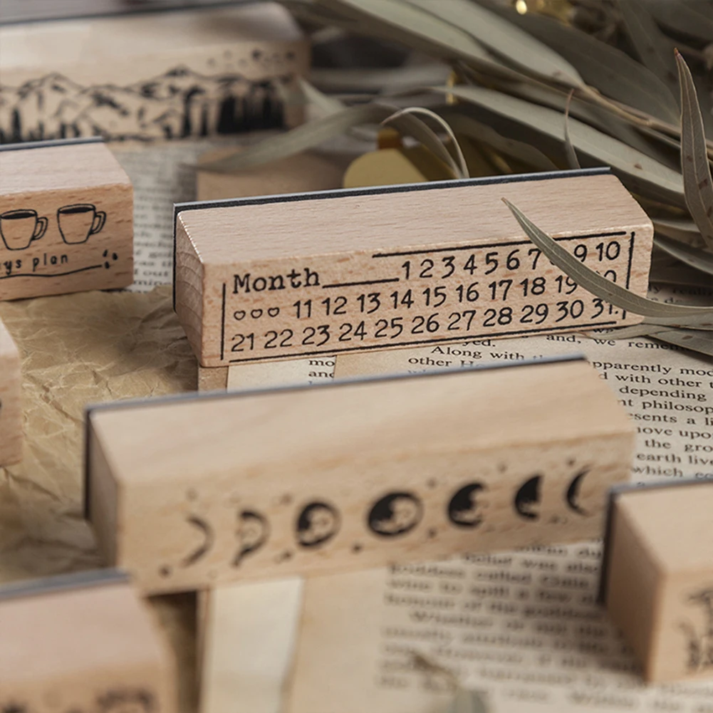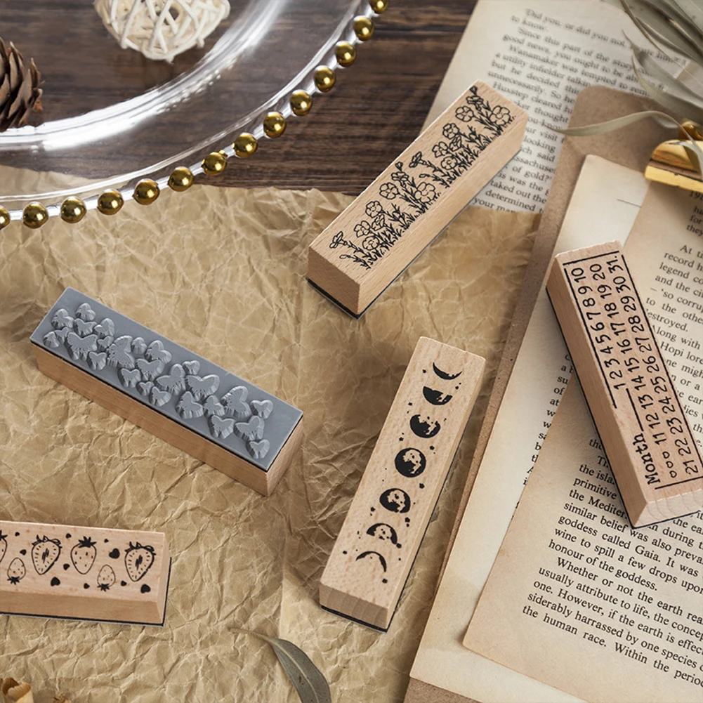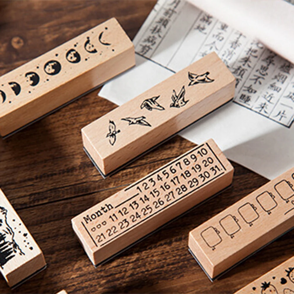 Винтаж деревянный штамп Moon планета цветок месяц план деревянные штампы для рукоделия Скрапбукинг фото марки для открытки штамповки украшения