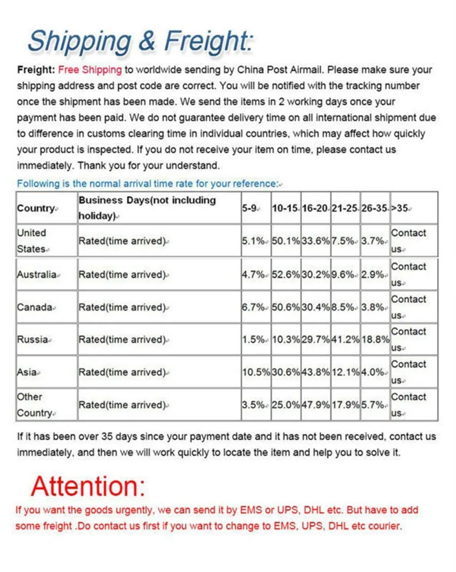 1. Пожалуйста, учитывайте разницу в 1-2 см из-за измерения вручную. 2. Реальный цвет может немного отличаться от изображений из-за многих факторов, таких как разрешение экрана компьютера, яркость, контрастность и т. д. Надеемся на понимание. Приятных покупок!