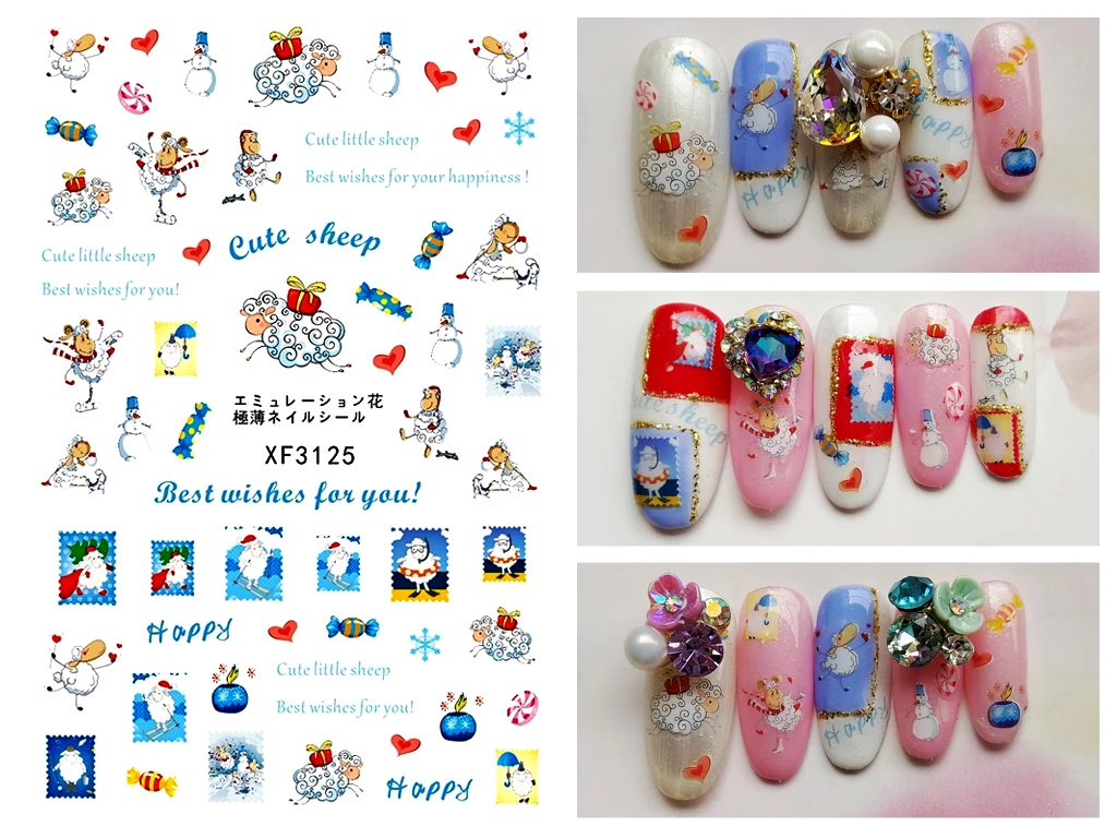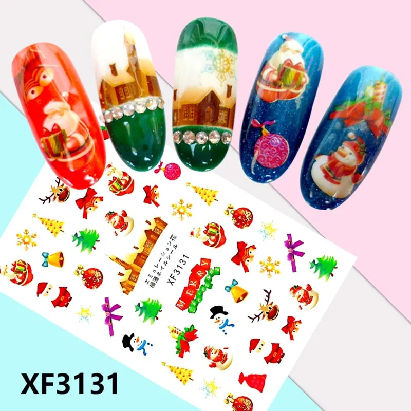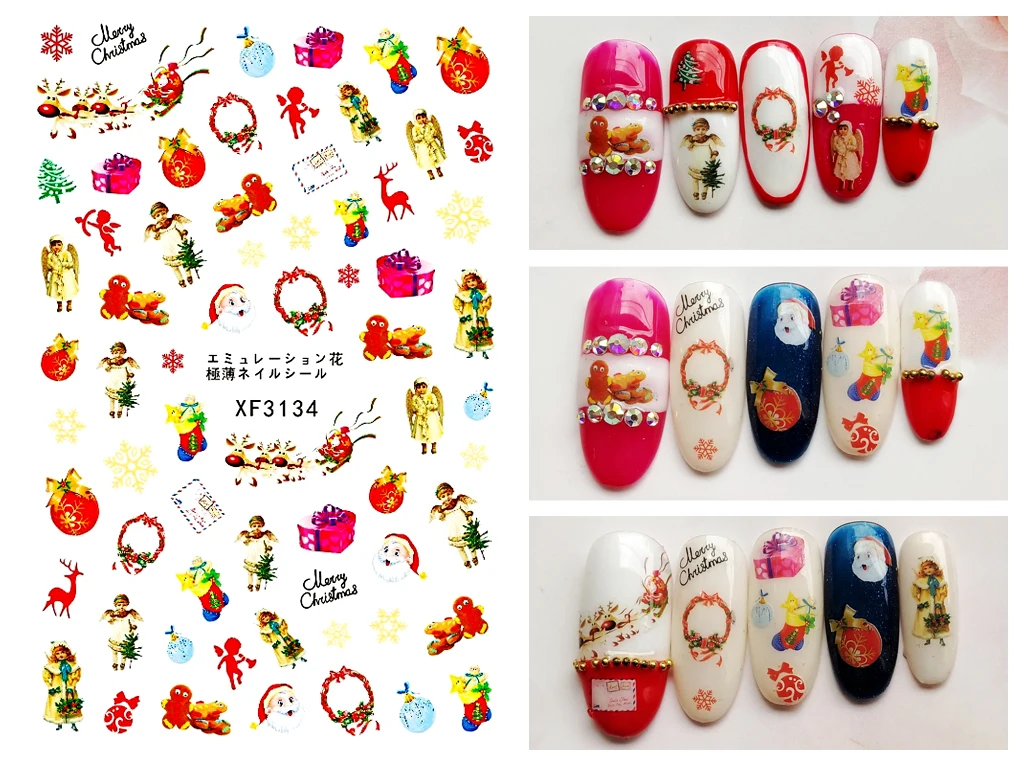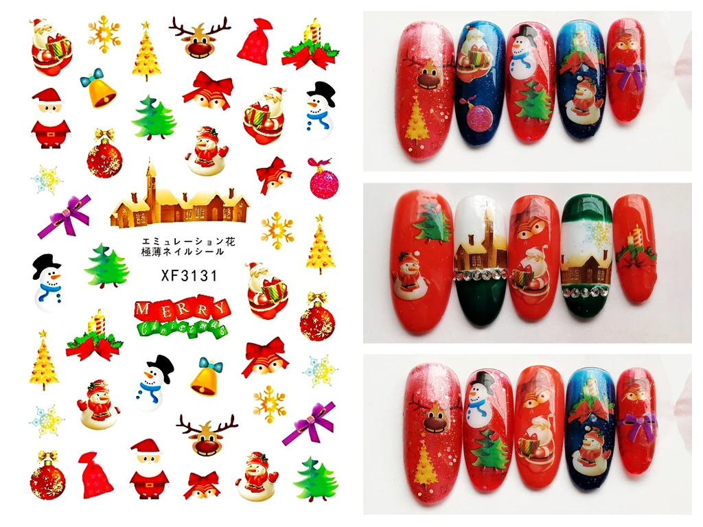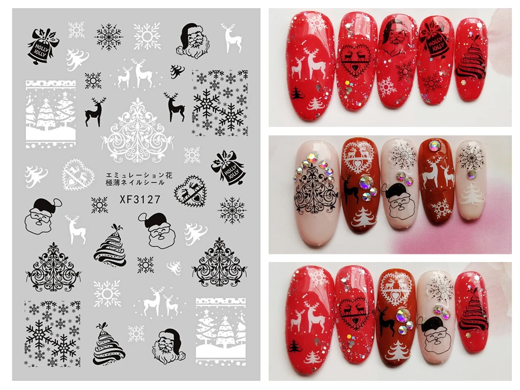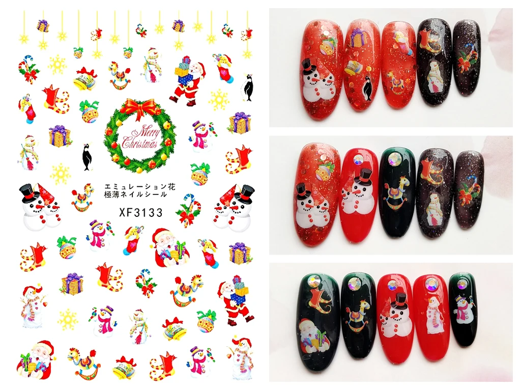 Наклейка на ногти 3D Советы ультра тонкий гвоздь крана Рождественская елка Снеговик Олень Подарок белая Снежинка звезда клей для ногтей XF001