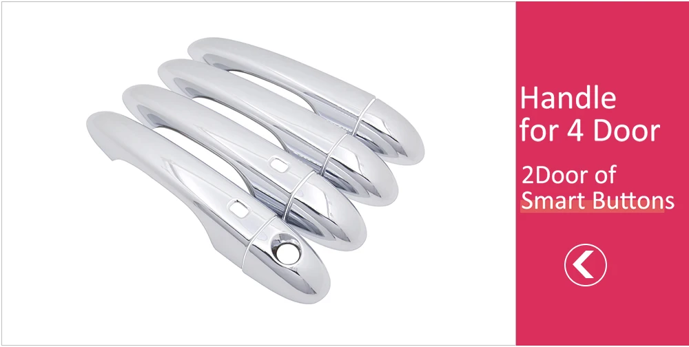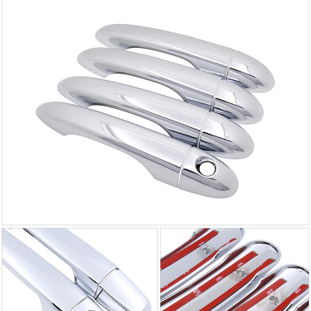 Сделайте свой автомобиль выделиться из толпы с помощью этих 4 высококачественных стильных хромированные покрытия для дверных ручек! Высококачественный пластик придает этим чехлам глубокий и глянцевый хромированный блеск! Они специально разработаны для вышеперечисленных моделей и идеально подходят! Они оснащены высокой прочности лента 3M клейкого материала на задней части, просто снимите пленку с подкладкой и нанесите! Занимает несколько секунд, никаких инструментов не требуется! Это действительно придаст вашему автомобилю крутой новый вид!