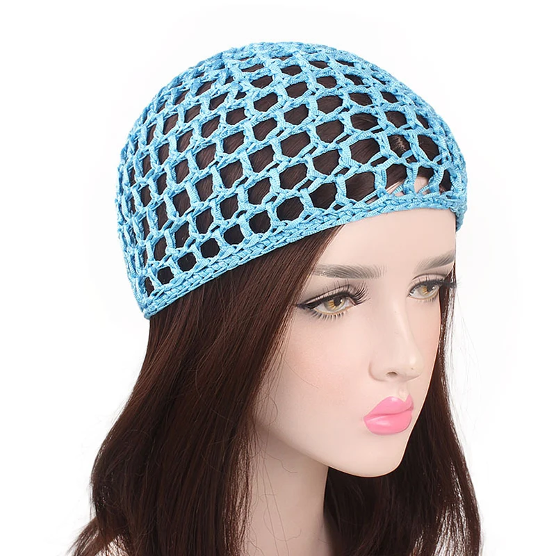 Женская сетчатая вязаная крючком шапка, однотонный спальный чехол с ночным мотивом, тюрбан