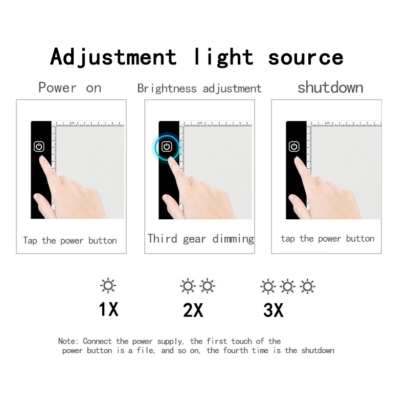 * Коснитесь переключателя включения/выключения, чтобы настроить яркость между низким, средним и высоким, яркость будет трансформироваться в свою очередь.