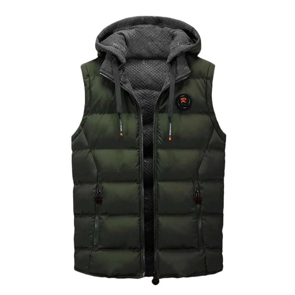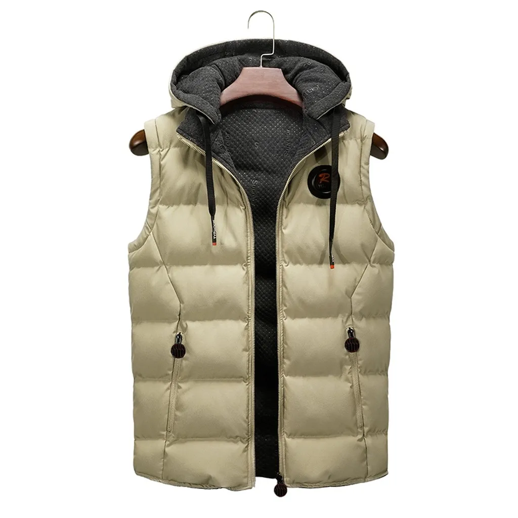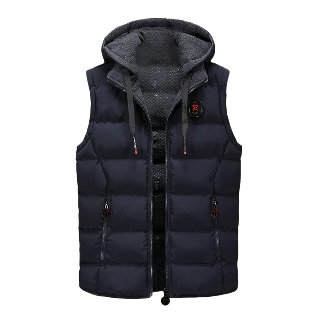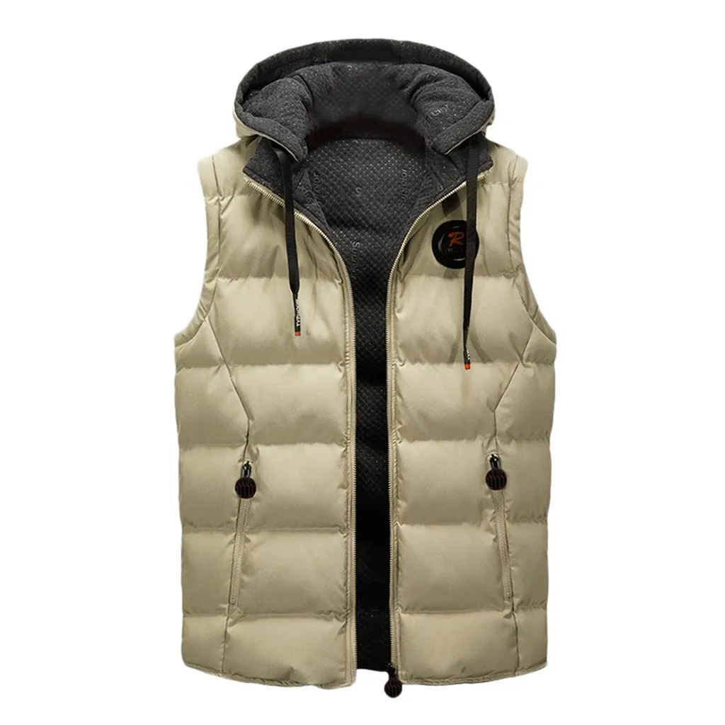 Мужская Повседневная теплая куртка на молнии, с капюшоном, без рукавов, верхняя одежда