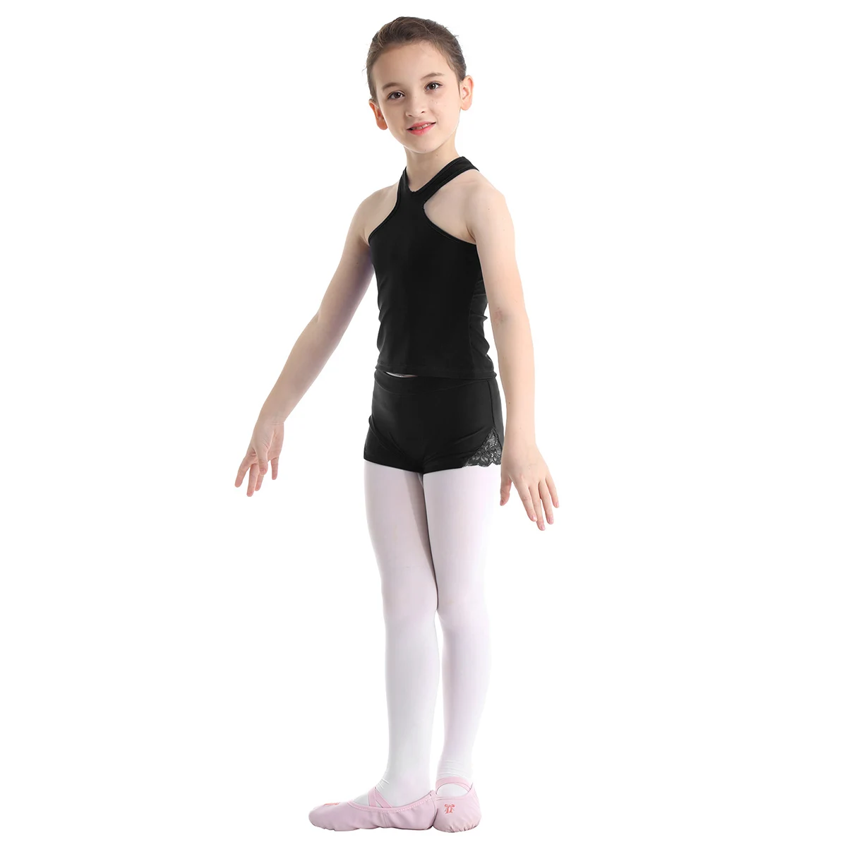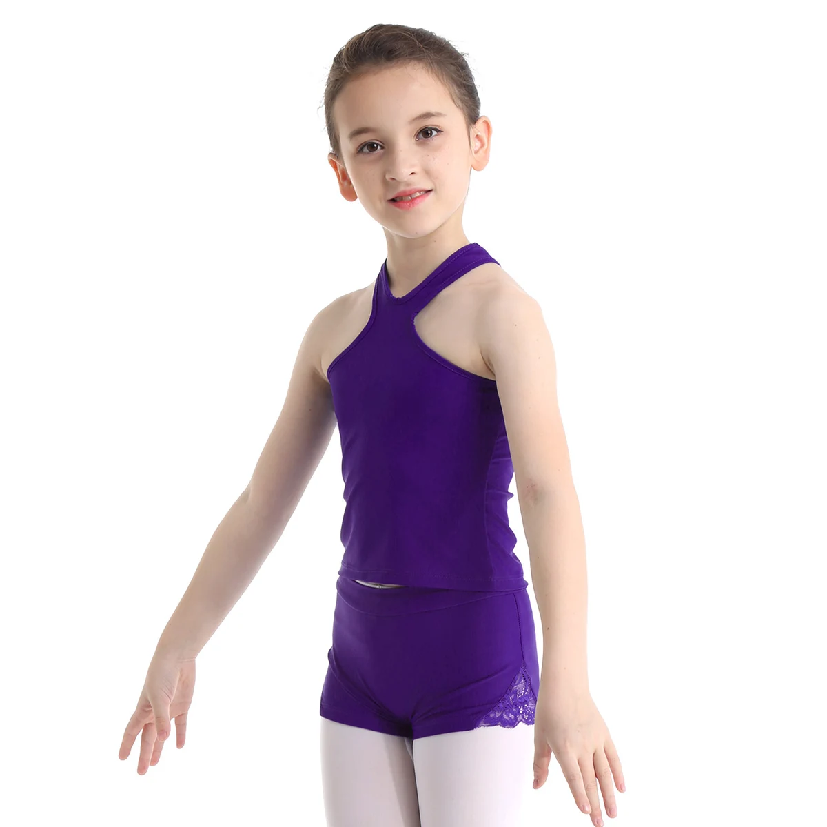 Наряд изготовлен из полиамида и Материал спандекс, ручная стирка. Таблица размеров означает возрастные диапазоны для девочек, но они предназначены только для общего указания. Борцовка спереди и майка-борцовка, однотонная. Эластичная ткань, удобная и дышащая для ношения. Подходящие низ с эластичным поясом, кружевные вставки по бокам. Спортивный комплект для вашей девочки. Подходит для занятий танцами, гимнастическое упражнение, сценическое представление, фитнес и т. Д.