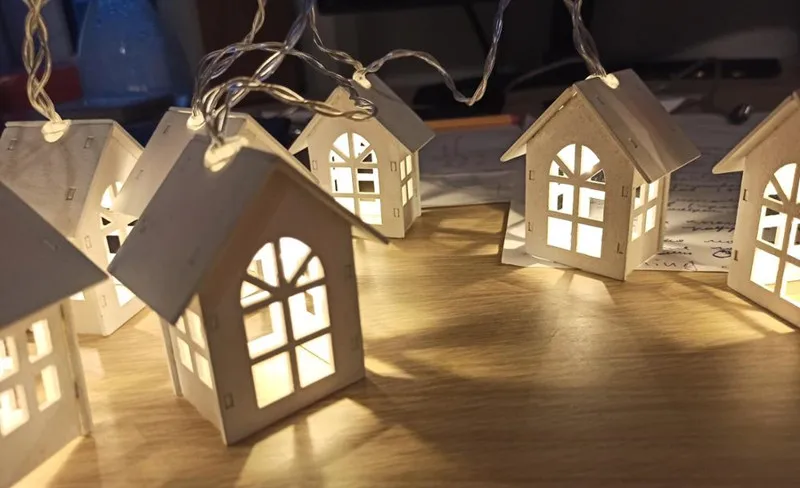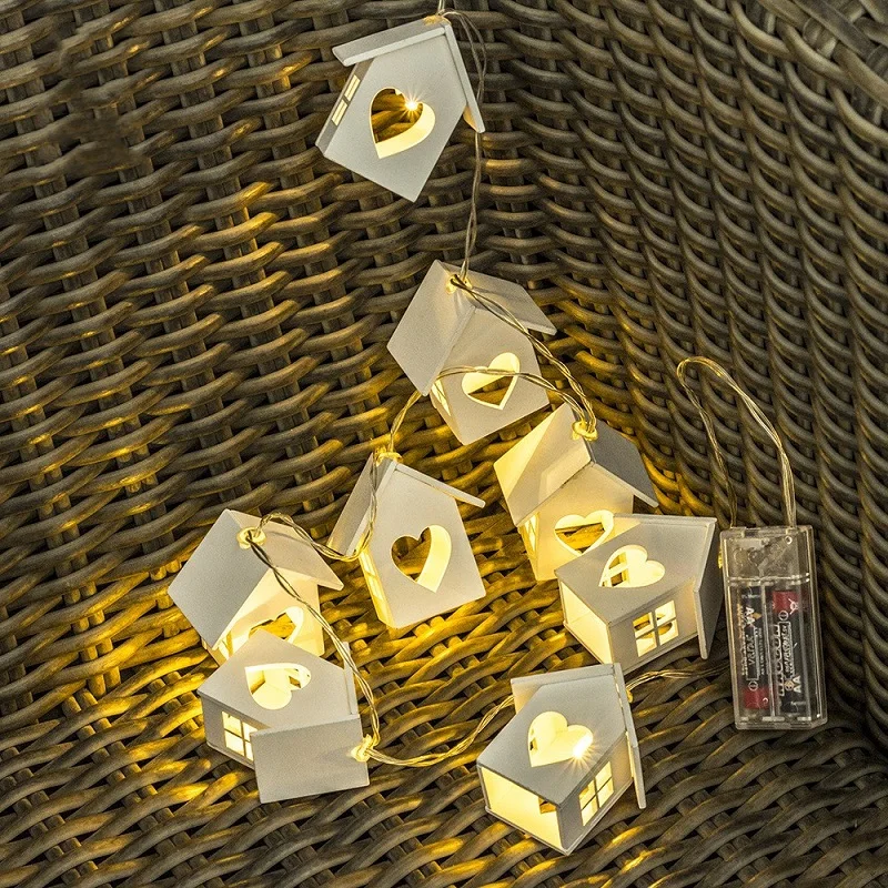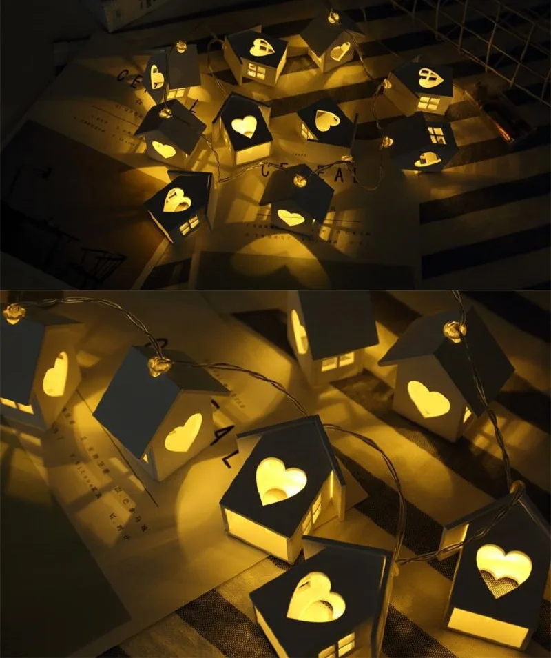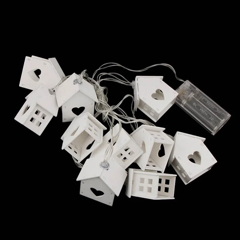 Светодиодный гирлянда Европейский Стиль деревянный дом строка светильник 1,5 м/3 м 10 светодиодный/20 светодиодный дерево «любящее сердце» дом Декор Свадебная вечеринка праздник Фея светильник s